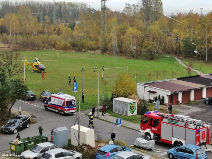 7 listopada około godziny 10:30 dyżurny SKKM PSP Tychy otrzymał zgłoszenie z prośbą o wyznaczenie oraz zabezpieczenie lądowiska dla śmigłowca LPR – Ratownik 4 w rejonie ulicy Długosza w Lędzinach. Śmigłowiec został wezwany na miejsce celem transportu około rocznego dziecka, które uległo poparzeniom. Na miejsce natychmiast zadysponowane zostały zastępy OSP Lędziny (GBA) oraz JRG Tychy (GBA, SLRt). Po przybyciu zastępów na miejsce, lądowisko zostało wyznaczone na osiedlowym boisku przy ulicy Długosza. W zabezpieczeniu brali również udział lędzińscy strażnicy miejscy. Dziecko (chłopiec) z poparzeniami około 30% ciała (głównie tułowia) zostało drogą lotnicza przetransportowane do szpitala. Ze wstępnych ustaleń wynika, że dziecko w chwili zdarzenia znajdowało się pod opieką matki, a chwila nieuwagi skutkowała tym wypadkiem (kubek z kawą). Rodzicom i maluchowi życzymy cierpliowości i powrotu do pelni zdrowia.