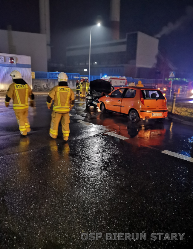 12 listopada około godziny 19:25 dyżurni KMP Tychy, KPP Bieruń oraz SKKM PSP Tychy otrzymali zgłoszenie o czołowym zderzeniu dwóch samochodów osobowych na ulicy Oświęcimskiej w rejonie bramy towarowej fabryki samochodów. Na miejsce zadysponowane zostały służby, które działały przy wcześniejszym potrąceniu pieszego na ul. Oświęcimskiej. W miejscu zdarzenia ruch został całkowicie wstrzymany. Osoby podróżujące pojazdami w tym dzieci trafiły pod opiekę ratowników medycznych. Dwoje (z piątki) dzieci w wieku 6 i 13 lat zostało przetransportowane do szpitala na dokladniejsze badania. Na szczęście również im nic poważnego się nie stało. Ze wstępnych ustaleń pracujących na miejscu Policjantów wynika, że kierowca Seata jadący w stronę os. Homera na łuku drogi ściął sobie zakręt i doprowadził do czołowego zderzenia z jadącym z naprzeciwka kierowca Fiata. Utrudnienia w ruchu w miejscu zdarzenia trwały blisko trzy godziny. Policjanci prowadzą dalsze postępowanie w sprawie tego zdarzenia.