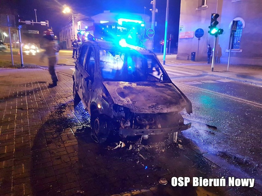 17 listopada około godziny 20:50 dyżurny SKKM PSP Tychy otrzymał zgłoszenie o pożarze samochodu osobowego na skrzyżowaniu ulic Warszawska – Wawelska w Bieruniu. Na miejsce natychmiast zadysponowane zostały zastępy OSP Bieruń Nowy (GCBA) oraz JRG Tychy (GBA). Palący się pojazd został usunięty na ul. Wawelska w kierunku Bijasowic. Na miejsce dodatkowo dojechał patrol bieruńskiej Straży Miejskiej. Strażacy podali jeden prąd piany na palący się samochód i po kilku minutach został ugaszony. Niestety samochód spłonął doszczętnie. Na czas działań gaśniczych ruch w miejscu pożaru był wstrzymany. Po około czterdziestu minutach działania zostały zakończone. Trwa ustalanie przyczyn i okoliczności powstania pożaru.