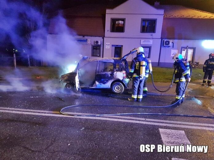 POŻAR OSOBÓWKI NA WAWELSKIEJ W BIERUNIU