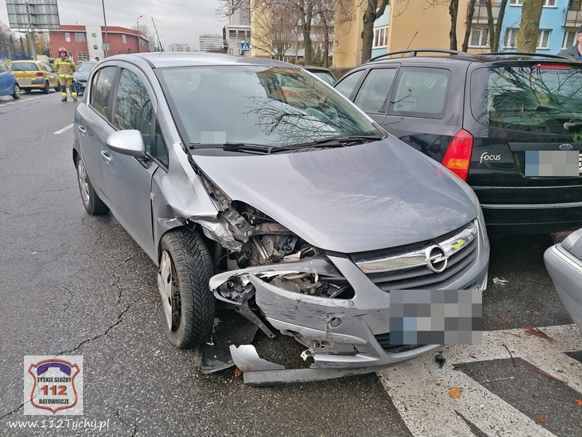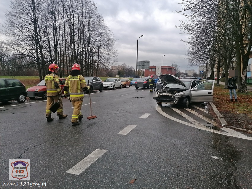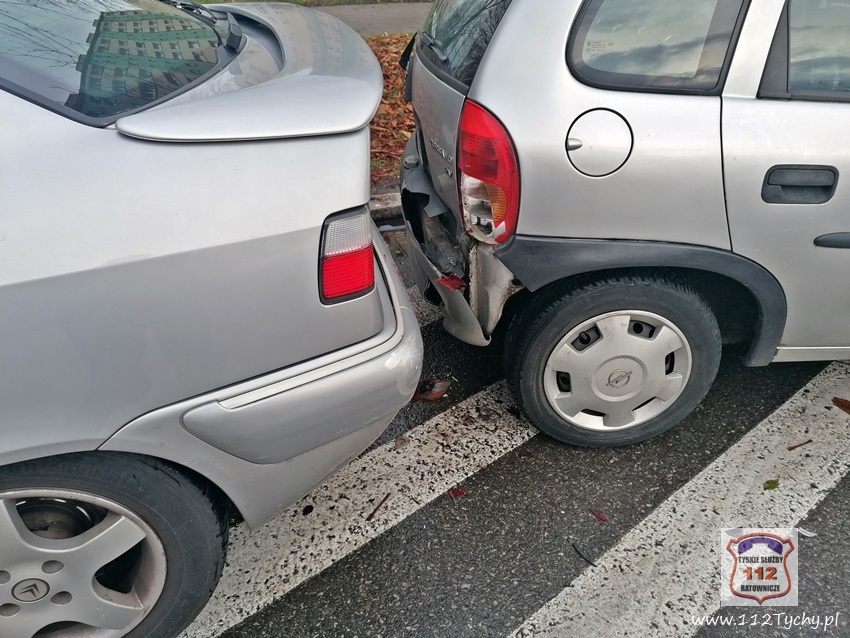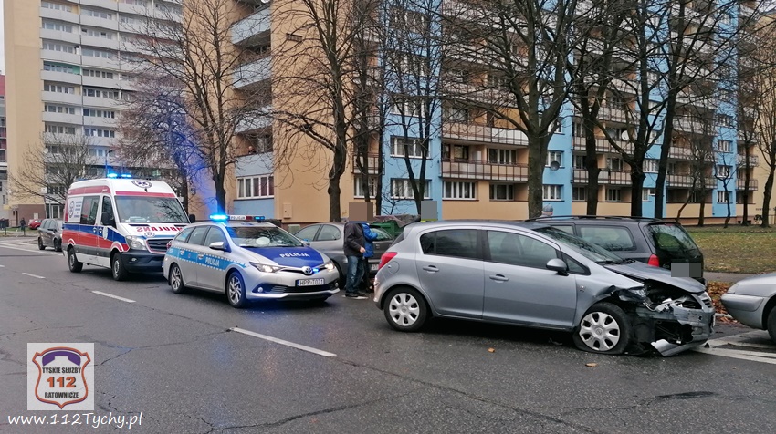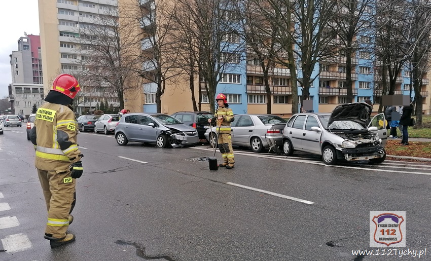 29 listopada około godziny 13;20 dyżurny SKKM PSP Tychy otrzymał zgłoszenie o zdarzeniu drogowym na ulicy Dąbrowskiego w rejonie nr 61. Na miejsce zdarzenia zadysponowane zostały dwa zastępy JRG Tychy (GBA, SLRt). Po dotarciu zastępów na miejsce okazało się, że doszło do zderzenia dwóch Opli, które uszkodziły dodatkowo dwa inne pojazdy. Na miejsce dodatkowo wezwany został patrol Policji. W miejscu zdarzenia wprowadzony został ruch wahadłowy, kierowany przez strażaków. Jedna z uczestniczek zdarzenia uskarżała się na bóle oraz zawroty głowy. Kierujący Dizałańiem Ratowniczym drogą radiowa poprosił o zadysponowanie na miejsce zespołu PRM. Decyzją ratowników medycznych kobieta została przewieziona do szpitala na dokładne badania. Z ustaleń pracujących na miejscu Policjantów jak i uczestników zdarzenia wynika, ze kierująca Oplem Corsa kobeita właczajac się do ruchu z parkingu na ul. Dąbrowskiego wymusiła pierwszeństwo przejazdu na kierującej Oplem Corsa, poruszającej się ul. Dąbrowskiego w kierunku ul. Grota Roweckiego. w wyniku zderzenia a tych dwóch pojazdów uderzyły one dodatkowo w zaparkowane w pobliżu inne pojazdy: Citroena i Forda. na szczęście uszkodzenia zaparkowanych pojazdów były niewielkie. Niestety tego nie można powiedzieć o obu Oplach. Ze wstępnych ustaleń i oględzin wynika, że będa one nadałay się tylko na złom. Po wykonaniu czynności przez Policjantów, pojazd sprawczyni został usunięty na pobocze, a drugi pojazd został odholowany. Sprawczyni zdarzenia została ukarana mandatem. Utrudnienia w ruchu trwały ponad godzinę.