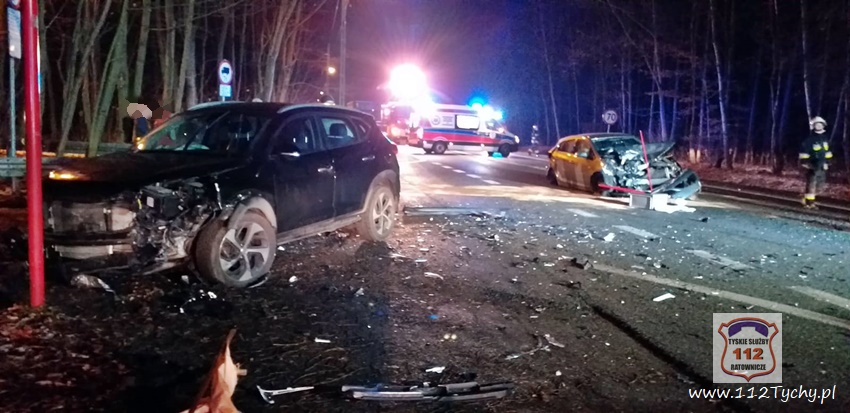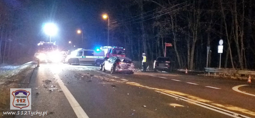 3 grudnia po godzinie 16 dyżurni SKKP PSP Mikołów i KPP Mikołów otrzymali zgłoszenie o zdarzeniu drogowym na ulicy Gliwickiej (DK 44) w rejonie hotelu Sjesta. Ze zgłoszenia wynikało, że zderzyły się trzy samochody osobowe: Nissan, Opel i Hyundai. Ruch w miejscu zdarzenia został całkowicie zablokowany. Na miejsce zdarzenia zadysponowane zostały zastępy JRG Mikołów (GBA, SRt), OSP Mokre (GBA), OSP Paniowy (GBA), patrole Policji oraz zespoły PRM. Po przybyciu na miejsce strażacy zabezpieczyli teren działań, oświetlili go oraz wraz z ratownikami medycznymi przystąpili do udzielania pomocy poszkodowanym. W zdarzeniu łącznie brało pięć osób. Cztery z nich (w tym dziecko) uczestniczące w zdarzeniu zostały przetransportowane do szpitali na dokładne badania. Ze wstępnych ustaleń pracujących na miejscu Policjantów wynika, że winnym zdarzenia jest kierowca Nissana, który uderzył w tył oczekującego na możliwość wykonania skrętu w lewo Opla, a ten z kolei po uderzeniu w tył został przemieszczony na przeciwległy pas ruchu gdzie zderzył się z Hyundaiem. Policja na czas działań ratunkowych oraz wykonanie pełnej dokumentacji ze zdarzenia wyznaczone zostały objazdy. Utrudnienia w ruchu trwały blisko trzy godziny. Mikołowscy Policjanci prowadzą dalsze postępowanie w sprawie tego nieszczęśliwego wypadku.