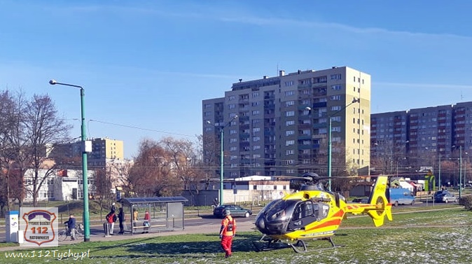 5 grudnia około godziny 11:30 na oznakowanym przejściu dla pieszych przy wjeździe na stację paliw przy al. Piłsudskiego (rejon ronda „Skałka”) doszło do potrącenia kobiety (69 lat) przez samochód osobowy KIA kierowany przez mężczyznę (45 lat). O zdarzeniu poinformowani zostali dyżurni KMP Tychy i SKKM PSP Tychy. Na miejsce zdarzenia natychmiast zadysponowane zostały patrole Policji, zespół PRM oraz zastępy JRG Tychy (GBA, GCBARt, SLRt). Ze względu na obrażenia pieszej na miejsce dodatkowo zadysponowany został śmigłowiec LPR – Ratownik 4. Strażacy zabezpieczyli miejsce zdarzenia oraz udzielili poszkodowanej kobiecie kwalifikowanej pomocy, a następnie piesza została przekazana pod opiekę ratowników medycznych. Strażacy dodatkowo wyznaczyli i zabezpieczyli lądowisko dla latającej karetki niedaleko miejsca zdarzenia. Obrażenia, których doznała piesza nie zagrażały jej życiu. Z uzyskanych informacji wynika, że doznała ona urazu nogi (kolana) oraz ręki i konieczny był transport do specjalistycznego szpitala w Sosnowcu. Kierowca osobówki w chwili zdarzenia był trzeźwy. Działania na miejscu trwały około dwóch godzin. Policjanci KMP Tychy prowadzą dalsze postępowanie mające na celu wyjaśnienie przyczyn i okoliczności tego zdarzenia.