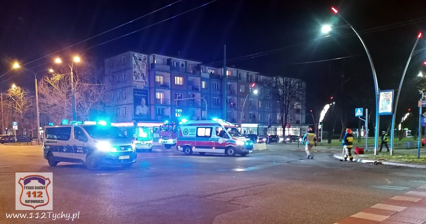 6 grudnia o godzinie 19:30 na skrzyżowaniu al. Niepodległości z ul. Grota Roweckiego doszło do zdarzenia drogowego z udziałem dwóch samochodów osobowych: Audi i Toyoty (nauka jazdy). Jednym ze świadków zdarzenia był jeden z naszych reporterów. Zabezpieczył on wraz z patrolem tyskiej Straży Miejskiej, który znalazł się w odpowiednim miejscu i czasie miejsce zdarzenia. O zdarzeniu został poinformowany dyżurny KMP Tychy. Dyżurny KMP Tychy o zdarzeniu poinformował dyspozytora pogotowia ratunkowego oraz dyżurnego SKKM PSP Tychy. Na miejsce poza patrolem Policji zadysponowany został zespół PRM oraz zastęp JRG Tychy (GBA). Na czas działań ruch na skrzyżowaniu został znacząco utrudniony. Ruchem kierowali strażnicy miejscy. Łącznie w pojazdach uczestniczących w zdarzeniu podróżowało siedem osób. Pod opiekę ratowników medycznych trafiła tylko jedna osoba ( instruktor nauki jazdy). Na szczęście nic poważnego jej się nie stało i po przebadaniu pozostała ona na miejscu. Kursantowi również nic się nie stało. Do zdarzenia doszło w momencie wykonywania przez pojazd nauki jazdy manewru skrętu w lewo z al. Niepodległości w ul. Grota Roweckiego. W chwili gdy pojazd przecinał pasy ruchu w kierunku UM Tychy w jego prawy przód uderzyło Audi. Sprawcą zdarzenia uznana została instruktorka nauki jazdy. Po około trzydziestu minutach rozbite pojazdy zostały przez strażaków zepchnięte na pobliskie parkingi, a następnie odholowane przez pomoc drogową. Tyscy Policjanci prowadzą dalsze postępowanie w sprawie tego zdarzenia.