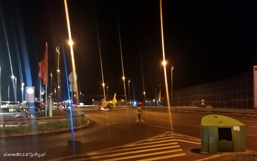 :13 grudnia około godziny 18 dyżurny SKKM PSP Tychy otrzymał zgłoszenie o potrąceniu pieszego przez samochód ciężarowy w rejonie stacji paliw na ulicy Beskidzkiej (DK 1) przy salonie samochodowym. Na miejsce natychmiast zadysponowane zostały zastępy JRG Tychy (GBA, SLRt), zespół PRM oraz patrole Policji. Dodatkowo miejsce zadysponowany został śmigłowiec LPR – Ratownik 6. Po przybyciu na miejsce okazało się, że piesza została potrącona (przygnieciona) do barier energochłonnych na wyjeździe ze stacji paliw. Na czas interwencji śmigłowca LPR ruch na trasie DK 1 został wstrzymany całkowicie. Potrącona kobieta z urazami nóg została przetransportowana drogą lotniczą do szpitala w Katowicach Ochojcu. Po odlocie śmigłowca ruch w kierunku Katowic odbywał się tylko lewym pasem, a w kierunku Pszczyny bez utrudnień. Policjanci KMP Tychy prowadzą dalsze czynności mające na celu wyjaśnienie tego zdarzenia.