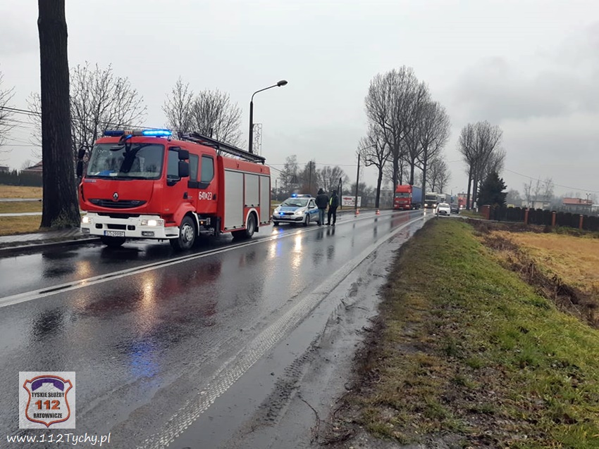 :22 grudnia około godziny 8:25 dyżurni KPP Bieruń i SKKM PSP Tychy otrzymali zgłoszenie o zdarzeniu drogowym na ulicy Warszawskiej (DK 44) w Bieruniu. Na miejsce zdarzenia zadysponowane zostały zastępy OSP Bieruń Nowy (GBARt), JRG Tychy (GBA, SLRt), zespół PRM oraz patrol Policji. Po dotarciu służb ratunkowych na miejsce okazało się, że doszło do zderzenia dwóch samochodów osobowych: VW oraz Forda (ambulans transportowy) i ciągnika siodłowego z naczepą typu cysterna. Ruch w miejscu zdarzenia został całkowicie zablokowany. W obu kierunkach objazd został wyznaczony przez ul. Granitową. Dwie osoby podróżujące Fordem trafiły pod opiekę przybyłych na miejsce ratowników medycznych i zostały one przetransportowane do szpitala na dokładne badania. Pozostałym uczestnikom zdarzenia nic się nie stało. Ze wstępnych ustaleń pracujących na miejscu Policjantów wynika, że sprawcą zdarzenia jest kierowca Forda, który uderzył w tył VW oraz w bok jadącej z naprzeciwka cysterny. Po około godzinie działania na miejscu zostały zakończone i ruch został przywrócony. Bieruńscy Policjanci prowadzą dalsze postępowanie w sprawie tego zdarzenia.