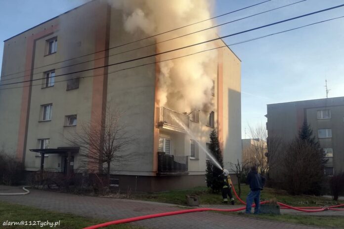 :15 stycznia po godzinie 15 dyżurny SKKM PSP Tychy otrzymał zgłoszenie o pożarze mieszkania na pierwszym piętrze w budynku wielorodzinnym przy ul. Warszawskiej w Bieruniu. Na miejsce natychmiast zadysponowane zostały zastępy OSP Bieruń Nowy (GBARt, GCBA), JRG Tychy (GBA, GBA, GCBARt, SD) oraz patrol Policji. Po dotarciu na miejsce zgłoszenie potwierdziło się. Strażacy podali dwa prądy wody na palące się wnętrze mieszkania – jeden z klatki schodowej, a drugi przez okno balkonowe. Dodatkowo strażacy weszli do mieszkania przez balkon po sprawieniu drabiny ratowniczej. W mieszkaniu składowane były różnego rodzaju odpady. Na miejsce wezwane zostało również pogotowie gazowe i pogotowie energetyczne, patrol Policji oraz zespół PRM – do jednej z lokatorek, która nie chciała opuścić swojego mieszkania. Po ugaszeniu ognia strażacy usunęli spalone elementy na zewnątrz mieszkania, przelali je oraz sprawdzili lokal kamerą termowizyjną. Na czas działań ratowniczo – gaśniczych na ul. Warszawskiej wprowadzony został ruch wahadłowy. Po ponad dwóch godzinach działania na miejscu zostały zakończone. Bieruńscy Policjanci prowadzą dochodzenie mające na celu ustalenie przyczyn i okoliczności powstania pożaru.