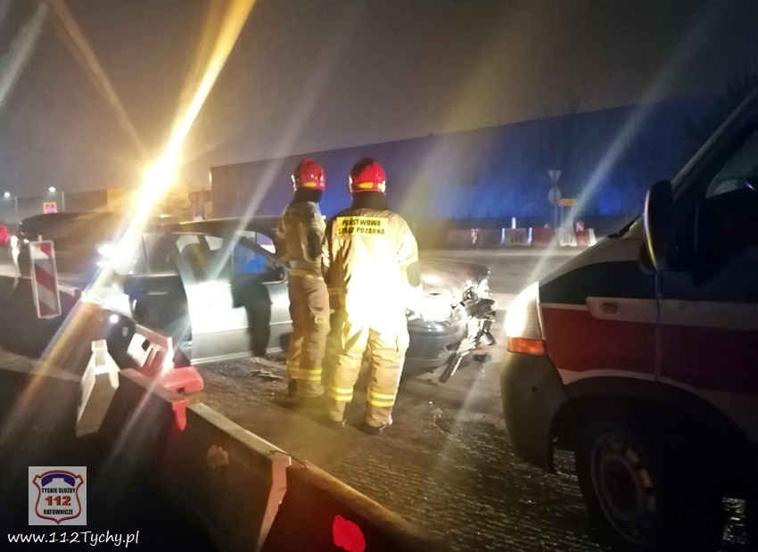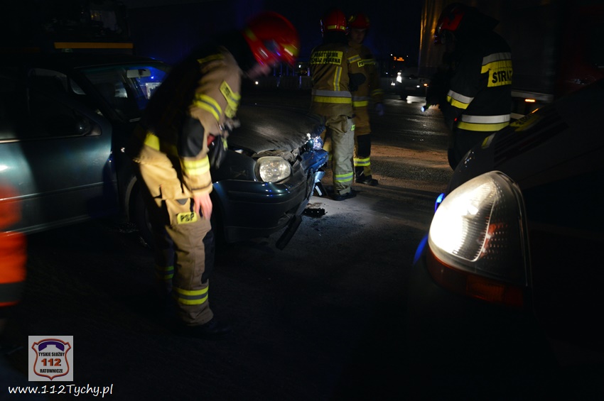:20 stycznia około godziny 17:15 dyżurni SKKM PSP Tychy i KMP Tychy otrzymali zgłoszenie o czołowym zderzeniu dwóch pojazdów na ul. Turyńskiej (DK 44) w rejonie fabryki FCA. Na miejsce natychmiast zadysponowane zostały zastępy JRG Tychy (GBA, GCBARt, SLRt), zespół PRM oraz patrol Policji. W wyniku czołowego zderzenia ruch na rondzie został częściowo wstrzymany. Po przybyciu na miejsce zgłoszenie potwierdziło się. W zdarzeniu brały udział BMW i VW. Uczestnicy zdarzenia trafili pod opiekę ratowników medycznych przybyłych na miejsce. Na szczęście nie doznali oni poważniejszych obrażeń. Z ustaleń pracujących na miejscu Policjantów jak i relacji uczestników wynika, że kierowca BMW jadąc ul. Turyńska w kierunku Bieruniu wjechał na rondo „pod prąd” (od lewej strony) doprowadzając do czołowego zderzenia z VW. Po około czterdziestu minutach uszkodzone pojazdy zostały usunięte z ronda i ruch został przywrócony. Policjanci KMP Tychy prowadzą dalsze postępowanie w sprawie tego zdarzenia.