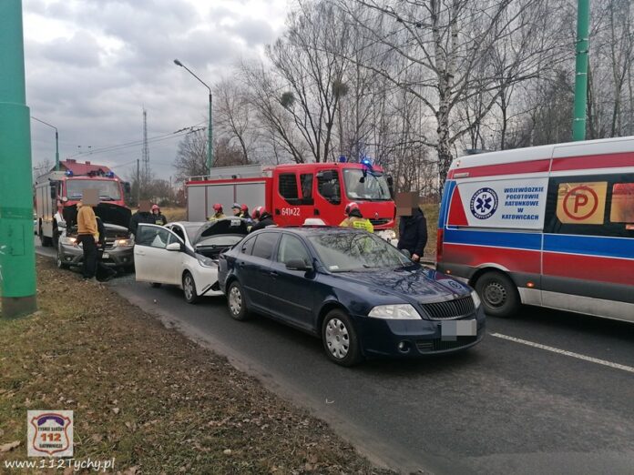 :31 stycznia około godziny 15:50 na ul. Budowlanych w rejonie byłego placu egzaminacyjnego na pasie w kierunku dworca PKP doszło do zdarzenia drogowego z udziałem trzech pojazdów. Na miejsce zdarzenia wezwane zostały służby ratunkowe: zespół PRM, patrol Policji i zastępy JRG Tychy (GBA, SCRt). W zdarzeniu brały udział: Fiat, Toyota i Skoda. Na czas działań ratunkowych ruch w miejscu zdarzenia został całkowicie wstrzymany. Pasażerka jednego z pojazdów trafiła pod opiekę ratowników medycznych. Na szczęście po przebadaniu okazało się, że nic poważnego jej się nie stało. Z ustaleń pracujących na miejscu Policjantów jak i uczestników zdarzenia wynika, że winnym spowodowania zdarzenia jest kierowca Fiata, który nie zachował odpowiedniej odległości od poprzedzającego pojazdu – Toyoty i uderzył w jej tył, a ta z kolei uderzyła w znajdująca się przed nią Skodę. Po około czterdziestu minutach uszkodzone samochody zostały usunięte z drogi i ruch został przywrócony. Policjanci prowadzą dalsze postępowanie w tej sprawie.