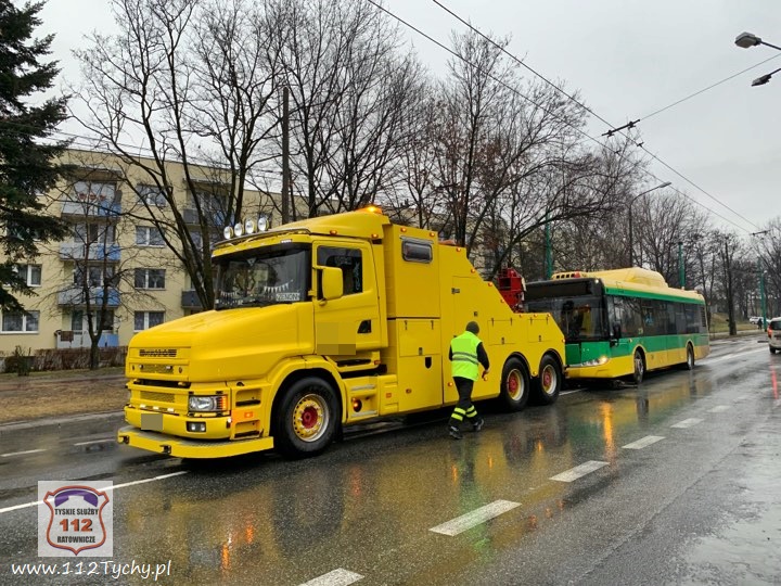 :4 lutego około godziny 7 dyżurny KMP Tychy otrzymał zgłoszenie o zdarzeniu drogowym na ul. Armii Krajowej. Ze zgłoszenia wynikało, ze kierowca autobusu komunikacji miejskiej wjechał na wysepkę rozdzielającą pasy ruchu na jednym z przejść dla pieszych niszcząc oznakowanie i oświetlenie tego przejścia. Na miejsce natychmiast wysłany został patrol Policji oraz zastępy JRG Tychy. Na czas działań Policji na miejscu ruch w kierunku Paprocan odbywał się pobliskim parkingiem. Na miejsce wezwana została również firma odpowiedzialna za oświetlenie przejścia – odłączyli oni zasilanie do uszkodzonej sygnalizacji. Kierowca autobusu został ukarany mandatem. Utrudnienia w ruchu trwały blisko dwie godziny, a uszkodzony autobus został odholowany.