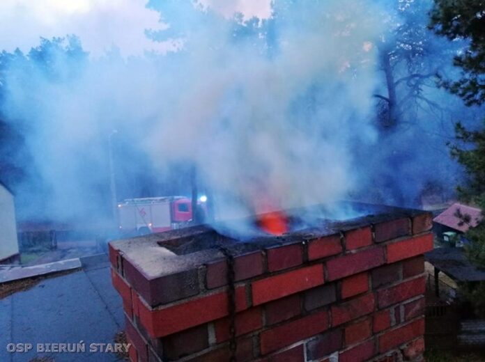 POŻAR SADZY W PRZEWODZIE KOMINOWYM DOMU PRZY ŁYSINOWEJ W BIERUNIU