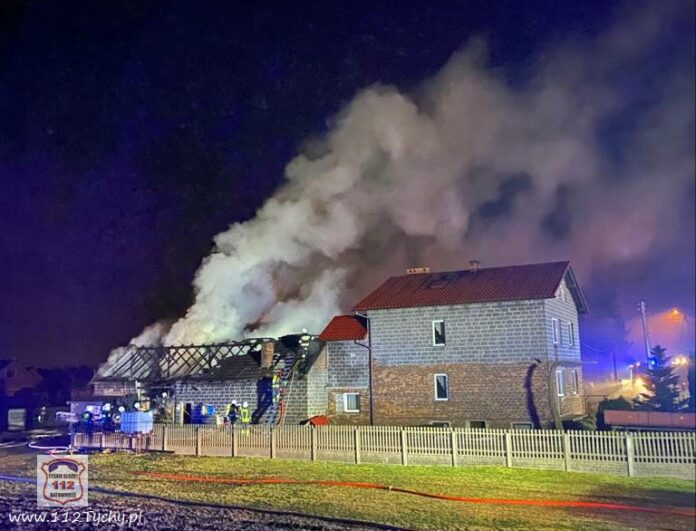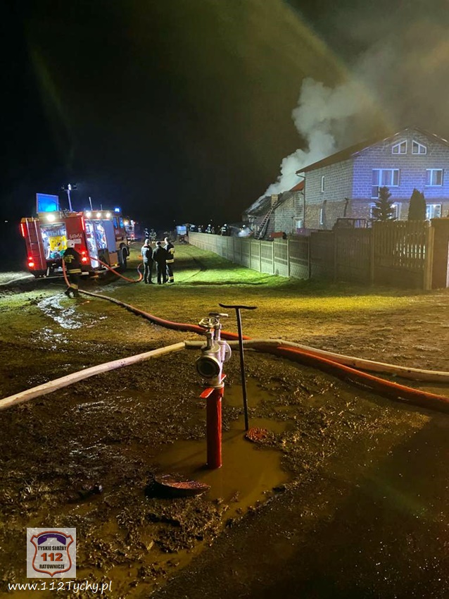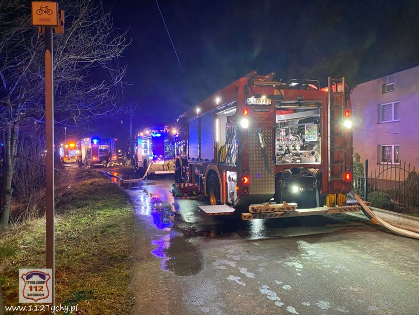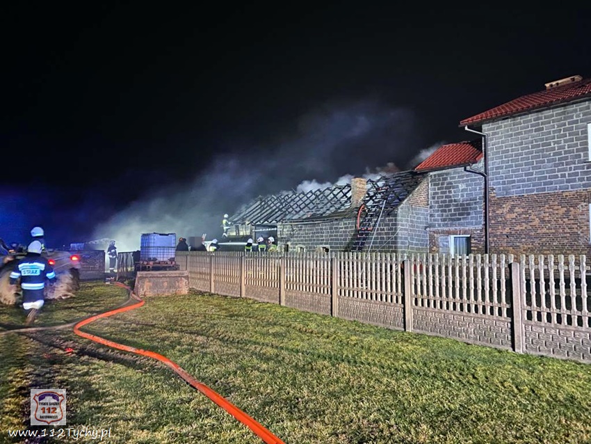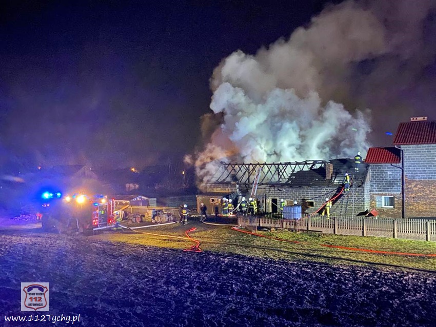 :29 lutego około godziny 21:30 dyżurny SK KM PSP Tychy otrzymał zgłoszenie o pożarze murowanej stodoły na terenie jednego z gospodarstw na ul. Nadbrzeżnej w Czarnuchowicach (dzielnica Bierunia). Ze zgłoszenia wynikało, że budynek stodoły połączony jest z budynkiem mieszkalnym, a w stodole znajduje się trzoda chlewna oraz składowana jest słoma. Na miejsce natychmiast zadysponowane zostały zastępy OSP Czarnuchowice (GBA, GBA), OSP Bieruń Nowy (GCBA) oraz JRG Tychy (GBA, GCBARt, SCD – 40,3). Po dotarciu na miejsce pierwszych zastępów KDR drogą radiową poprosił o dodatkowe siły i środki. Do działań wysłane zostały dodatkowe zastępy z jednostek OSP Chełm Śląski (GBA, GCBA), OSP Bieruń Stary (GCBA) oraz OSP Imielin (GBA). W rejonie działań występowały problemy z zaopatrzeniem wodnym ( niskie ciśnienie wody w hydrantach, a nawet jej brak). Konieczne było dowożenie wody z innego miejsca. Z budynku stodoły wyprowadzona została trzoda chlewna. Pożar poza wyposażeniem i składowanymi materiałami objął dach budynku. Podane zostały prądy wody na palące się obiekty oraz w obronie budynku mieszkalnego. W trakcie działań jeden z strażaków uległ wypadkowi – rozcięcie ręki. Na miejsce wezwany został zespół ratownictwa medycznego WPR Katowice – stacjonujący w Bieruniu, który przewiózł strażaka do szpitala. Po godzinie 22 na miejsce działań przybył KM PSP Tychy, st. bryg. mgr. inz. Piotr Szojda, który przejął dowodzenie działaniami. Ze wstępnych ustaleń wynika, że do pożaru doszło najprawdopodobniej w wyniku zwarcia instalacji elektrycznej. Po ugaszeniu pożaru przy użyciu maszyn rolniczych ze stodoły wywiezione zostały tlące się elementy i bele słomy, które były przelewane na zewnątrz i dogaszane. Działania ratowniczo – gaśnicze zakończyły się około godziny 2 w nocy. Trwa ustalanie dokładnych przyczyn i okoliczności powstania pożaru.