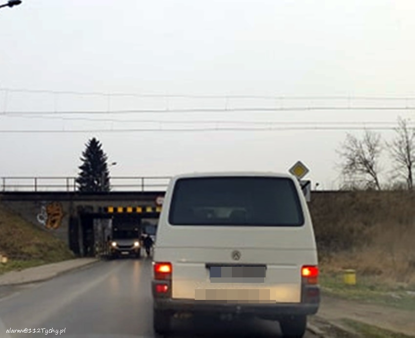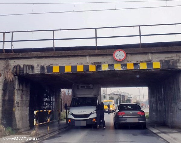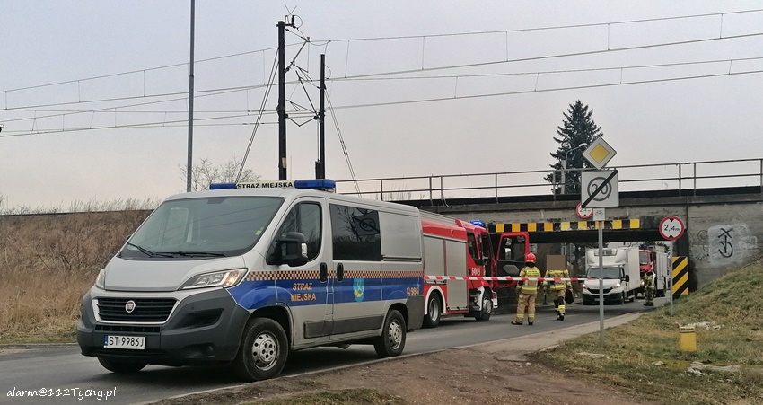 :4 marca około godziny 7 na ulicy Glinczańskiej kierujący samochodem dostawczym marki Iveco utknął pod wiaduktem. Na miejscu zdarzenia interwencję podjęli tyscy Strażnicy Miejscy, którzy podjęli ręczną regulację ruchem. Dodatkowo na miejsce wezwani zostali strażacy z JRG Tychy oraz patrol Policji. Kierowca dostawczaka pomimo upuszczania powietrza z kół swojego pojazdu nie był w stanie sam wycofać pojazdu z potrzasku. Na czas usuwania pojazdu ruch został całkowicie wstrzymany. W trakcie działań jedna z kierujących innym pojazdem chcąc zawrócić wjechała do przydrożnego rowu. Strażacy JRG Tychy pomogli kobiecie i wyciągnęli pojazd z rowu. Następnie przystąpili do uwolnienia dostawczaka spod wiaduktu. Po około godzinie działania na miejscu zostały zakończone. Policjanci ukarali kierowcę mandatem.