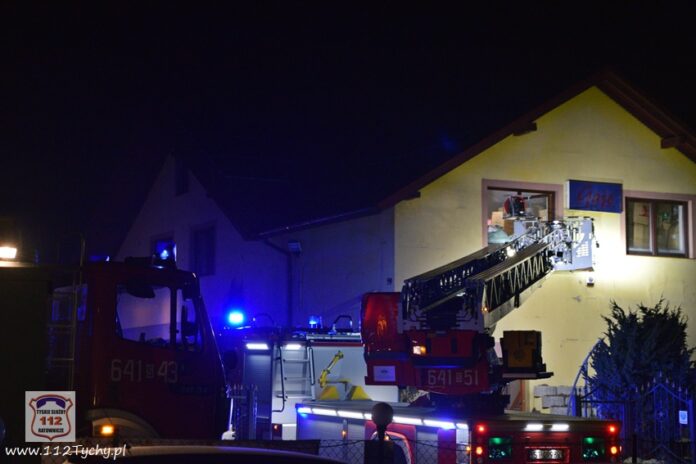 :4 marca około godziny 20:30 dyżurny SK KM PSP Tychy otrzymał zgłoszenie o pożarze w budynku hurtowni papierniczej przy ul. Oświęcimskiej. Na miejsce natychmiast zadysponowane zostały zastępy JRG Tychy (GBA, GBA, GCBARt, SCD – 40,3). Po dotarciu na miejsce i rozpoznaniu sytuacji zgłoszenie zostało potwierdzone. Strażacy w aparatach ochrony układu oddechowego przystąpili do działań. Jedna z osób przebywających w budynku potrzebowała pomocy medycznej. Na miejsce wezwany został zespół ratownictwa medycznego WPR Katowice – stacja Tychy. Do wsparcia działań wezwany został dodatkowy zastęp JRG Tychy (SCRt). Działania na miejscu poza zlokalizowaniem pożaru, jego ugaszeniem polegały dodatków na przewietrzeniu i oddymiania pomieszczeń. Po ponad dwóch godzinach działania na miejscu zostały zakończone.