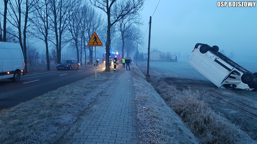 :5 marca około godziny 5:25 dyżurny KPP Bieruń otrzymał zgłoszenie o zdarzeniu drogowym w Bieruniu (Jajosatch) na ulicy Turystycznej. Ze zgłoszenia wynikało, że w wyniku zderzenia dwóch pojazdów jeden z nich dachował. Na miejsce zadysponowane zostały zastępy OSP Bojszowy (GBA), OSP Bojszowy Noe (GBA), JRG Tychy (GBA, SCRt) oraz zespół ratownictwa medycznego i patrole Policji. Na czas działań ratunkowych ruch na ul. Turystycznej został całkowicie wstrzymany. Jedna osoba podróżująca samochodem dostawczym została przetransportowana do szpitala. Ze wstępnych ustaleń pracujących na miejscu Policjantów wynika, że doszło do zderzenia dwóch pojazdów: osobowego Mitsubishi i dostawczego Renault. W wyniku tego zderzenia dostawczak dachował. Utrudnienia w ruchu trwały ponad godzinę. Bieruńscy Policjanci prowadzą dalsze postępowanie w tej sprawie.