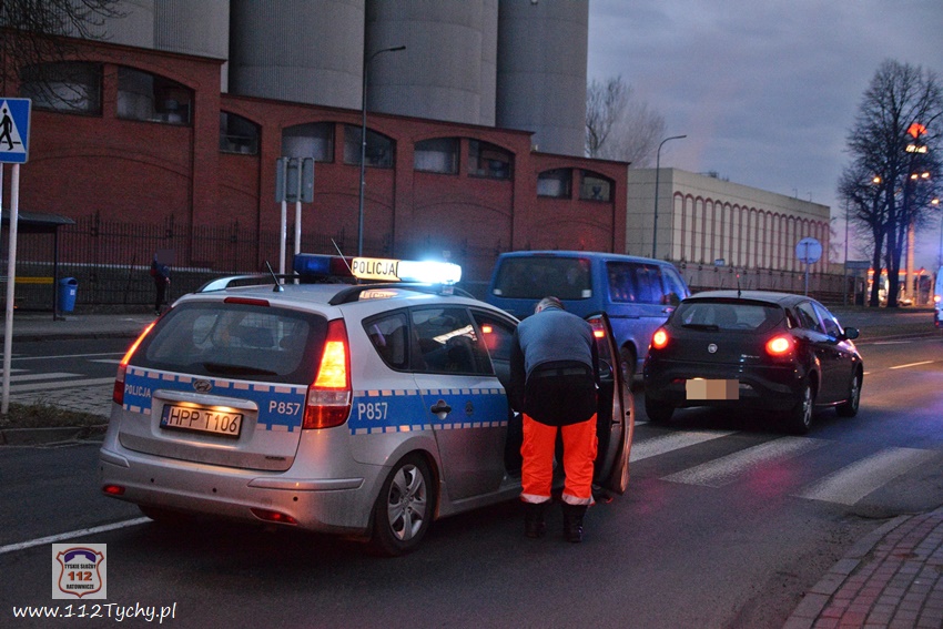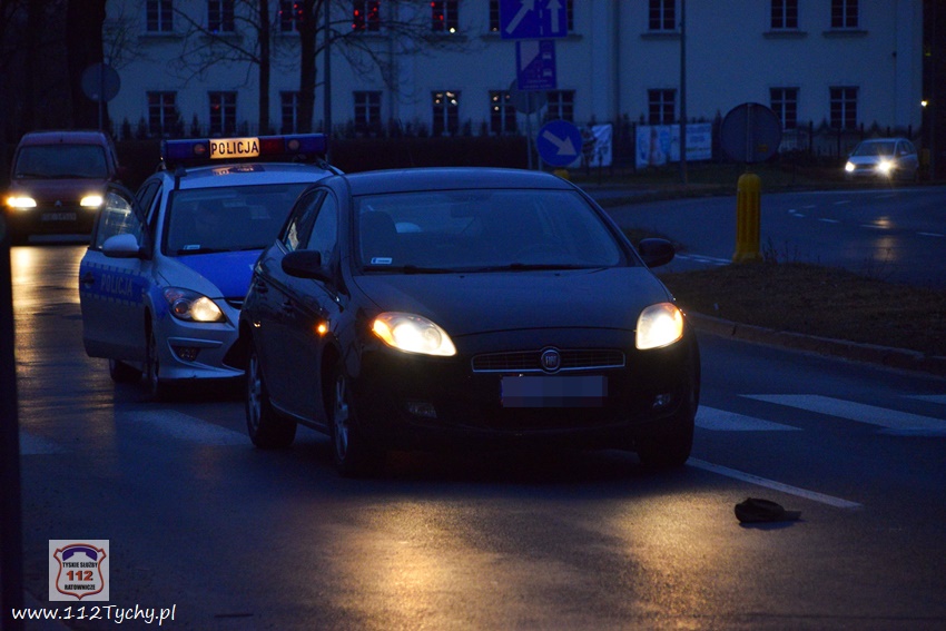 :7 marca około godziny 5:30 na oznakowanym przejściu dla pieszych na ulicy Katowickiej w rejonie skrzyżowania z ul. Sadową doszło do potrącenia pieszego. Z pomocą poszkodowanemu pospieszyli kierowcy aut będących w pobliżu, a wśród nich funkcjonariusz tyskiej Straży Miejskiej będący jednocześnie strażakiem ratownikiem w OSP Lędziny. Powiadomił on operatora CPR o zdarzeniu i udzielił poszkodowanemu pomocy przedmedycznej. Na miejsce zadysponowane zostały: zespół ratownictwa medycznego WPR Katowice – stacja Tychy, zastępy JRG Tychy (GBA, SCRt) oraz patrol Policji. Poszkodowany mężczyzna (63 lata) z obrażeniami ciala zosta przetransportowany (złamany kręgosłup) do szpitala na dokładne badania. Ze wstępnych ustaleń pracujących na miejscu Policjantów wynika, że pieszy przechodził przez oznakowane przejście dla pieszych, a kierowca osobowego Fiata najprawdopodobniej go nie zauważył. Kierowca Fiata (34 lata) w chwili zdarzenia był trzeźwy. Zostały mu zatrzymane uprawnienia do kierowania pojazdami. Przez blisko dwie godziny prawy pas w kierunku browaru był wyłączony z ruchu. Policjanci KMP Tychy prowadzą dalsze czynności w sprawie tego zdarzenia.