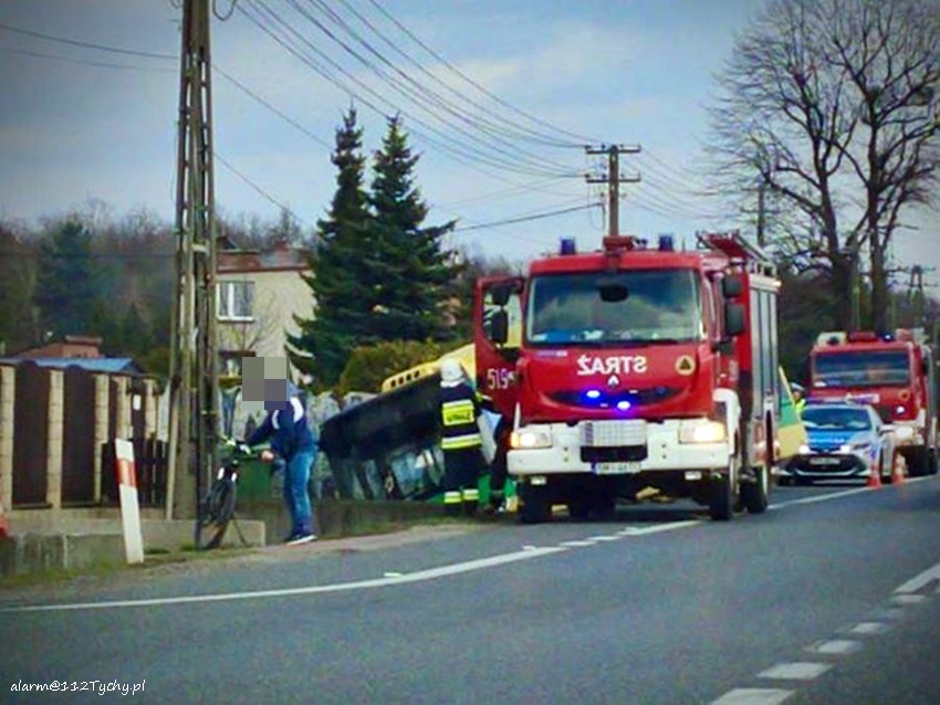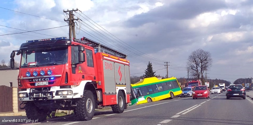 :3 kwietnia około godziny 16 dyżurni SK KP PSP Mikołow i KPP Mikołów otrzymali zgłoszenie o zdarzeniu drogowym na ul. Gliwickiej. Ze zgłoszenia wynikało, że do przydrożnego rowu wjechał autobus komunikacji miejskiej tyskiego PKM – u. Na miejsce natychmiast zadysponowane zostały zastępy OSP Paniowy, JRG Mikołów oraz patrol Policji. Po przybyciu służb na miejsce zgłoszenie potwierdziło się. W miejscu zdarzenia ruch odbywał się z utrudnieniami. Autobusem poza kierowca podróżowało dwóch pasażerów. Jeszcze przed przybyciem na miejsce służb ratunkowych opuścili oni pojazd. Nie doznali żadnych obrażeń. Ze wstępnych ustaleń pracujących na miejscu Policjantów i relacji kierowcy autobusu wynika, że kierowca chciał uniknąć czołowego zderzenia z pojazdem jadącym z naprzeciwka, który miał wykonywać manewr wyprzedzania. Dodatkowo podczas czynności Policjanci ujawnili, że kierowca wykonywał pracę pomimo nieważnego prawa jazdy (utraciło ważność). Policjanci zdecydowali o skierowaniu sprawy do sądu. Uszkodzony autobus został wyciągnięty z rowu przez pomoc drogową i odholowany do zajezdni.