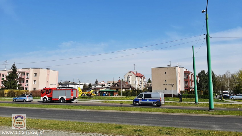 :16 kwietnia około godziny 9 dyżurni SK KM PSP Tychy i KMP Tychy otrzymali zgłoszenie z prośbą o zabezpieczenie lądowiska dla śmigłowca LPR – Ratownik 4 w rejonie ulicy Rataja. Śmigłowiec wraz z naziemnym zespołem ratownictwa medycznego został zadysponowany do mężczyzny, u którego doszło do zatrzymania krążenia. Na miejsce natychmiast zadysponowane zostały zastępy JRG Tychy (GBA) oraz patrole Policji i Straży Miejskiej. Śmigłowiec wylądował obok budynku, w którym trwała walka o życie mężczyzny. Dzięki wysiłkom ratowników funkcje życiowe zostały przywrócone. Po około trzydziestu minutach śmigłowiec z poszkodowanym mężczyzną (66 lat) odleciał do szpitala w Katowicach Ochojcu. Na czas lądowania i startu śmigłowca ruch na ul. Jaśkowickiej był całkowicie wstrzymany. Po około czterdziestu minutach działania zostały zakończone.