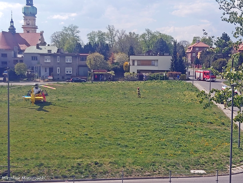 :28 kwietnia po godzinie 13 dyżurny SK KM PSP Tychy otrzymał zgłoszenie z prośbą o wyznaczenie i zabezpieczenie lądowiska dla śmigłowca LPR – Ratownik 4. Śmigłowiec został zadysponowany celem szybkiego transportu mężczyzny, który spadł ze schodów. Na Miejsce zadysponowane zostały zastępy JRG Tychy (GBA) i patrol Policji. Lądowisko zostało wyznaczone na polanie w rejonie bramy wjazdowej dla pracowników tyskiego browaru od strony ul. Nowokościelnej. Mężczyzna (64 lata) był już pod opieką ratowników medycznych. Mężczyzna z urazem głowy został przetransportowany do szpitala. O wypadku powiadomiona została Państwowa Inspekcja Pracy oraz Prokuratura.