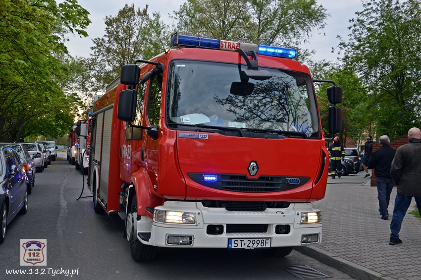 :4 maja po godzinie 18 dyżurny SK KM PSP Tychy otrzymał zgłoszenie o zadymieniu w piwnicy budynku wielorodzinnego przy ul. Różyckiego. Na miejsce natychmiast zadysponowane zostały zastępy JRG Tychy (GBA, GBA, GCBA, SCD – 40,3), patrol Policji oraz pogotowie gazowe i energetyczne. Po dotarciu na miejsce i rozpoznaniu sytuacji okazało się, że zadymienie jest spowodowane pracami remontowymi prowadzonymi w piwnicy budynku. Pogotowie gazowe i energetyczne zostało odwołane. Po kilkunastu minutach działania strażaków zostały zakończone i zastępy wróciły do koszar.