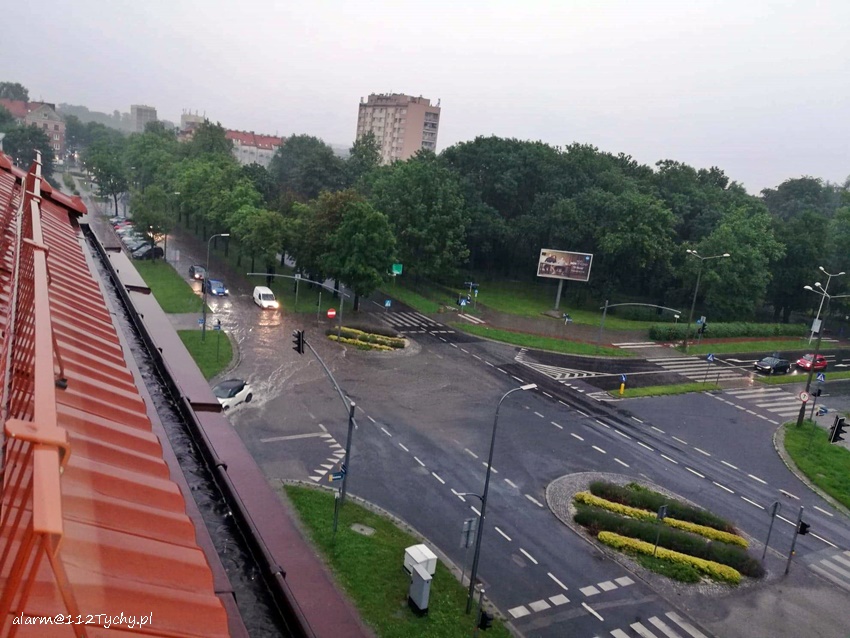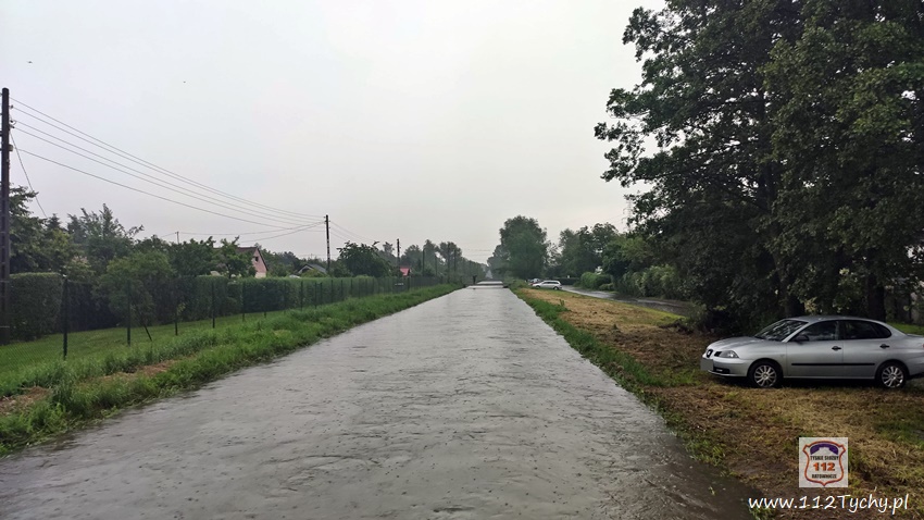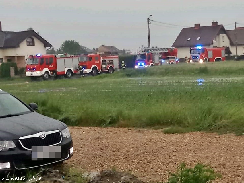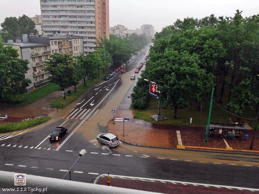 :18 czerwca po godzinie 17 nad Tychami oraz powiatem bieruńsko – lędzińskim przeszła gwałtowna burza, której towarzyszyły obfite opady deszczu. Około godziny 17:20 dyżurny SK KM PSP Tychy odebrał jedno z pierwszych zgłoszeń. Dotyczyło ono pożaru dachu budynku jednorodzinnego po uderzeniu pioruna. Do działań zadysponowane zostały zastępy OSP Lędziny i JRG Tychy. W przeciągu kolejnych minut do Stanowiska Kierowania Komendanta Miejskiego PSP Tychy wpływały kolejne zgłoszenia. W większości dotyczyły one zalanych posesji oraz piwnic w budynkach jednorodzinnych jak i wielorodzinnych na terenie miasta Tychy jak i miast powiatu bieruńsko – lędzińskiego. Łącznie takich zgłoszeń wpłynęło ponad 50. Na terenie powiatu strażacy działali w Chełmie Śląskim, Imielinie, Bieruniu, Bojszowach, Świerczyńcu (12 zgłoszeń) oraz mieście Tychy (około 40 zgłoszeń). Na terenie m. tychy strażacy działali, m.in na terenie posesji przy ul. Moniuszki, Batorego (uszkodzony dach), Jaworowej, Dzwonkowej (powalone drzewo), Hutniczej, Konfederatów Barskich, Wieniawskiego, Nad Jeziorem, Pod Lasem, Wiązowej, Starokościelnej, Dymarek, Sienkiewicza, Damrota, Wiejskiej (uszkodzony dach), Na Grobli (zapchana kanalizacja deszczowa). Strażacy działali również na terenie KMP Tychy – zalane garaże. W związku z burzą doszło również do uruchomienia alarmu pożarowego w jednym ze sklepów w Lędzinach przy ul. Hołdunowskiej. Tam do działań skierowane zostały zastępy OSP Lędziny, OSP Imielin i JRG Tychy. Na szczęście nie było pożaru. Podczas obfitych opadów deszczu podniósł się również stan wody w Potoku Tyskim. Zalane zostały ulice Budowlanych (przy Urzędzie Pracy), ul. Burschego (przy ogródkach działkowych), al. Jana Pawła II na wysokości garaży piętrowych, skrzyżowanie ul. Dąbrowskiego – Grota Roweckiego oraz zjazd z trasy DK1 na al. Piłsudskiego. W godzinach wieczornych (ok.23) strażacy z OSP Bojszowy Nowe usuwali powalone drzewo na ul. Gościnnej w Bojszowach Nowych. Do działań na terenie m. Tychy poza zastępami JRG Tychy, dysponowane były zastępy jednostek OSP: Bieruń Stary, Bieruń Nowy, Bojszowy, Międzyrzecze, Świerczyniec i Lędziny.