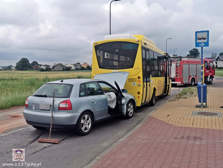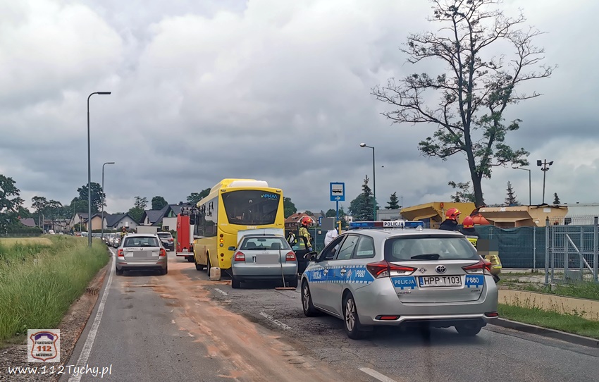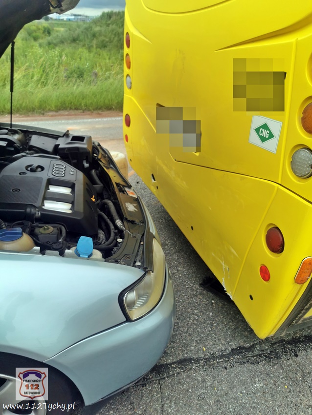 :19 czerwca po godzinie 16 dyżurny SK KM PSP Tychy otrzymał zgłoszenie o zdarzeniu drogowym na ulicy Targiela. Ze zgłoszenia wynikało, że samochód osobowy uderzył w busa komunikacji miejskiej. Na miejsce natychmiast zadysponowane zostały zastępy JRG Tychy (GBA, GCBA, SCRt), patrol Policji oraz ZRM. Po dotarciu na miejsce zgłoszenie potwierdziło się. Do zdarzenia doszło w pobliżu cielmickiego cmentarza. W miejscu zdarzenia wprowadzony został ruch wahadłowy. W tył busa Iveco należącego do tyskiego PKM-u uderzyło osobowe Audi. Kierująca osobówką kobieta trafiła najpierw pod opiekę strażaków (wsparcie psychiczne), a następnie ratowników medycznych WPR Katowice. Po przebadaniu kobieta pozostała na miejscu zdarzenia. Z ustaleń pracujących na miejscu Policjantów wynika, że kierująca Audi najprawdopodobniej się zagapiła i uderzyła w tył busa. Przez blisko godzinę w miejscu zdarzenia występowały utrudnienia w ruchu. Po wykonaniu dokumentacji pojazdy zostały usunięte, a ruch przywrócony. Policjanci KMP tychy prowadzą dalsze postępowanie w sprawie tego zdarzenia.