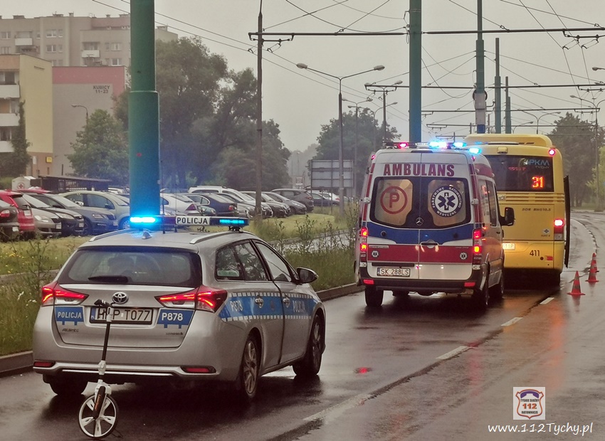 :20 czerwca około godziny 18 na ul. Jaśkowickiej w rejonie Skate Parku (kierunek os. R) doszło do potrącenia pieszego przez autobus komunikacji miejskiej. Na miejsce zdarzenia zadysponowany został ZRM WPR Katowice – stacja Tychy oraz patrol Policji. Na czas działań ratunkowych ruch został całkowicie wstrzymany. 25 – letni mężczyzna z podejrzeniem urazu kręgosłupa i urazem klatki piersiowej został przewieziony do szpitala. Ze wstępnych ustaleń pracujących na miejscu Policjantów jak i relacji kierowcy autobusu wynika, że mężczyzna najprawdopodobniej wybiegł zza przydrożnego drzewa wprost pod koła autobusu. Do potrącenia doszło poza oznakowanym przejściem dla pieszych. Policjanci sprawdzali również monitoring miejski. Na miejsce zdarzenia wezwany został również policyjny technik kryminalistyki oraz nadzór ruchu PKM Tychy. Po wykonaniu dokumentacji i zabezpieczeniu śladów na miejscu zdarzenia ruch został udrożniony. Policjanci KMP Tychy prowadzą dalsze postępowanie w sprawie tego zdarzenia.