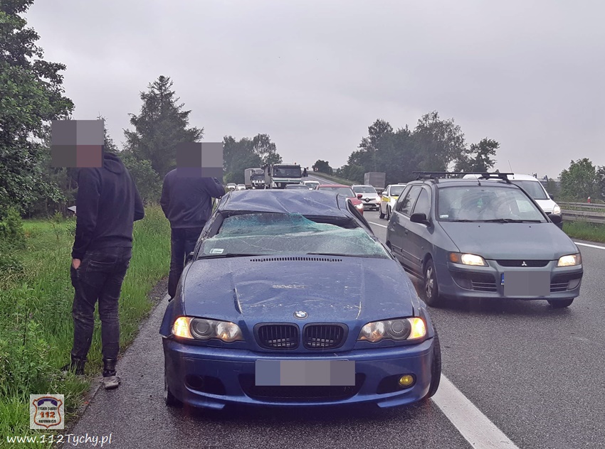 :22 czerwca około godziny 16 dyżurni KMP Tyhcy oraz SK KM PSP Tychy otrzymali zgłoszenie o dachowaniu samochodu osobowego na trasie S1 (560km) w kierunku Warszawy. Na miejsce natychmiast zadysponowane zostały zastępy JRG Tychy, ZRM oraz patrol Policji. Po dotarciu na miejsce zgłoszenie potwierdziło się. Z ustaleń pracujących na miejscu Policjantów wynika, że kieorwca BMW na łuki drogi utracił panowanie nad swoim pojazdem, uderzył w bariery energochłonne, a następnie dachował. Patrząc na zniszczenia samochodu trudno uwierzyć, że kierowca wyszedł z tego zdarzenia bez szwanku. Utrudnienia w ruchu trwały ponad godzinę. Policjanci KMP Tychy prowadzą dalsze postępowanie w sprawie tego zdarzenia.