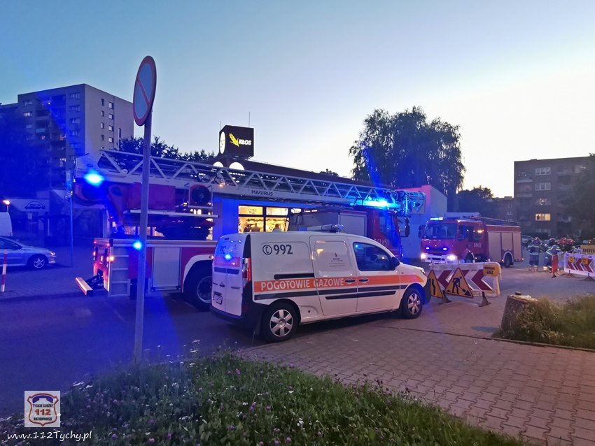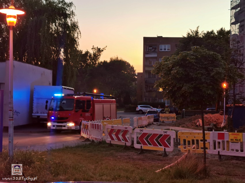 :14 lipca około godziny 20:55 dyżurny SK KM PSP Tychy otrzymał zgłoszenie o wyczuwalnym zapachu gazu przy wykopie w rejonie budynku wielorodzinnego na ul. Morcinka. W miejscu tym prowadzone są prace przez pracowników spółki gazowniczej. na miejsce zgłoszenia zadysponowane zostały zastępy JRG Tychy (GBA, GBA, GCBARt, SCRt, SCD – 40,3) oraz pogotowie gazowe i patrol Policji. Na czas działań ruch na ul. Morcinka został zablokowany oraz występowały utrudnienia w ruchu na ul. Dmowskiego (zablokowany prawy pas w kierunku CH Skałka). Przybyli na miejsce pracownicy pogotowia gazowego oraz strażacy nie stwierdzili rozszczelnienia gazociągu. Po około trzydziestu minutach działania na miejscu zostały zakończone.
