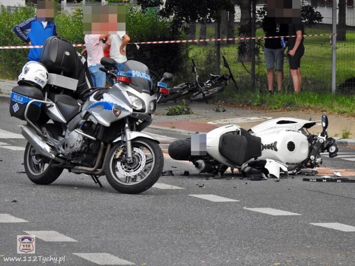 :19 lipca około godziny 19:30 dyżurni SK KM PSP Tychy i KMP Tychy otrzymali zgłoszenie o zdarzeniu drogowym z udziałem samochodu osobowego i motocykla na ul. Edukacji w rejonie skrzyżowania z ul. Elfów. Na miejsce zdarzenia natychmiast zadysponowane zostały zastępy JRG Tychy (GBA, GCBARt, SCRt), patrole Policji i ZRM. Po dotarciu służb na miejsce zgłoszenie potwierdziło się. Ruch na skrzyżowaniu został całkowicie zablokowany. W zdarzeniu brały udział osobowe BMW i motocykl Suzuki. Z ustaleń pracujących na miejscu Policjantów wynika, że do zdarzenia doszło w momencie gdy kierowca osobówki wykonywał manewr skrętu w lewo z ul. Edukacji w ul. Elfow. W wyniku zderzenia kierowca motocykla (21 lat) trafił pod opiekę ratowników medycznych. Podjęta została decyzja o konieczności transportu mężczyzny do szpitala drogą lotniczą. W tym celu na miejsce został zadysponowany śmigłowiec LPR – Ratownik 4 . Lądowisko zostało wyznaczone i zabezpieczone przez strażaków JRG Tychy (GBA) na Placu pod Żyrafą. Jak ustalili pracujący na miejscu Policjanci kierowca BMW w chwili zdarzenia był trzeźwy, a motocykliści zostanie pobrana krew do badań w szpitalu. Dodatkowo okazało się, że motocyklista nie posiadał uprawnień do kierowania motocyklem. Dodatkowo na miejsce wezwany został policyjny technik kryminalistyki. Działania służb na miejscu zdarzenia trwały około trzech godzin. Policjanci KMP Tychy prowadzą dalsze czynności w sprawie tego zdarzenia, która swój finał będzie miała w sądzie.