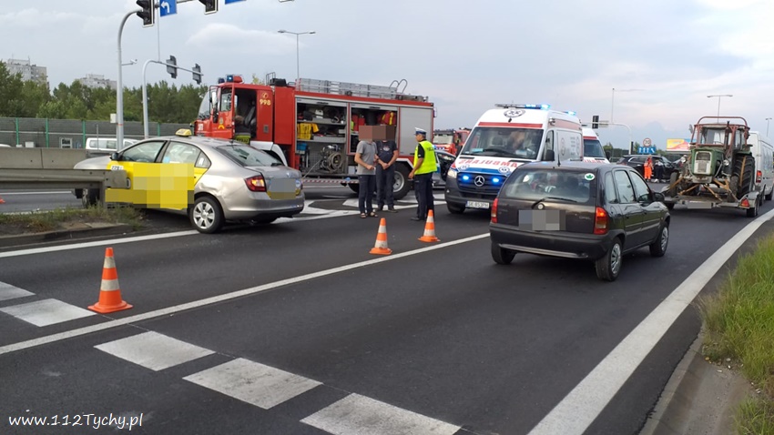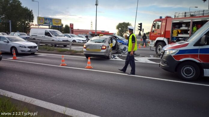 :17 sierpnia po godzinie 18 dyżurny SK KP PSP Mikołów otrzymał zgłoszenie o zdarzeniu drogowym na skrzyżowaniu dróg krajowych 81 i 44 w Mikołowie. Na miejsce zdarzenia zadysponowane zostały zastępy JRG Mikołów (GBA, SRt), OSP Mikołów (GLBARt), zespoły ZRM, patrole Policji oraz śmigłowiec LPR – Ratownik 4. Na czas działań ratunkowych ruch na skrzyżowaniu został całkowicie wstrzymany. Z ustaleń pracujących na miejscu Policjantów jak i relacji świadków wynika, że winnym zdarzenia jest kierowca Skody (taxi), który jadąc w kierunku Skoczowa wjechał na skrzyżowanie na czerwonym świetle chcąc wykonać manewr zawracania (z prawego pasa) i wjechał wprost pod jadącego od strony Gliwic Renault doprowadzając do zdarzenia. Kierowca Skody droga lotniczą został przetransportowany do szpitala w Katowcach Ochojca, a kierujaca Renault została przetransportowana do szpitala w Mikołowie. Utrudnienia w ruchu potrwają około dwóch godzin.