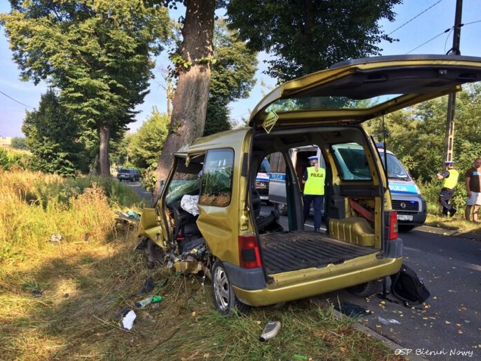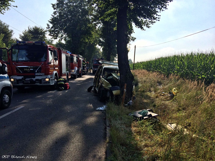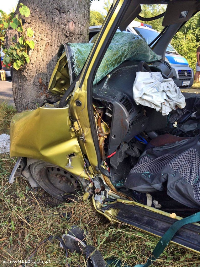 :20 sierpnia około godziny 7:40 na ul. Techników w Chełmie Śląskim doszło do wypadku drogowego. W jedno z przydrożnych drzew z dużą siłą uderzył osobowy Citroen. Na miejsce zdarzenia natychmiast zadysponowane zostały zastępy OSP Bieruń Nowy (GBARt), JRG Tychy (GBA, SCRt, SLRr), patrole Policji oraz ZRM i śmigłowiec LPR – Ratownik 4. Ruch na ul. Techników został całkowicie zablokowany. Po dotarciu na miejsce strażacy przy użyciu narzędzi hydraulicznych przystąpili do wykonania dostępu do zakleszczonego kierowcy osobówki. Pojazdem podróżował 37 letni mężczyzna (Ukrainiec) wraz z półtorarocznym dzieckiem. Dziecko wyszło ze zdarzenia bez szwanku i zostało przekazane przybyłej na miejsce matce. Kierowca po wydobyciu z wraku pojazdu trafił pod opiekę ratowników medycznych, a następnie drogą lotniczą został przetransportowany do szpitala w Katowicach Ochojcu. Utrudnienia na miejscu trwały ponad dwie godziny. Bieruńscy Policjanci prowadzą dalsze postępowanie mające na celu wyjaśnienie przyczyn i okoliczności tego zdarzenia.