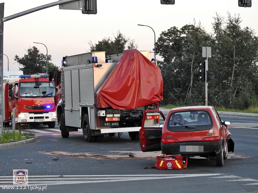 :20 sierpnia około godziny 18:50 na skrzyżowaniu ul. Oświęcimska (DK 44) – Czarna doszło do czołowo bocznego zderzenia drogowego z udziałem dwóch samochodów osobowych. W zdarzeniu brały udział Fiat i Opel. Na miejsce zdarzenia zadysponowane zostały zastępy JRG Tychy (GBA, SCRt), dwa ZRM, i patrol Policji. Ruch na skrzyżowaniu na czas działań ratunkowych został ograniczony. Dwie osoby (kierowcy obu pojazdów) w wyniku zdarzenia doznały obrażeń i zostały przetransportowane do szpitala na dokładne badania. Ze wstępnych ustaleń pracujących na miejscu Policjantów wynika, że sprawcą zdarzenia jest kieorwca Opla, który najprawdopodobniej wjechał na skrzyżowanie na „późnym” żółtym. Utrudnienia w ruchu trwały kilka godzin. Policjanci KMP Tychy prowadzą dalsze postępowanie mające na celu wyjaśnienie przyczyn i okoliczności tego zdarzenia.