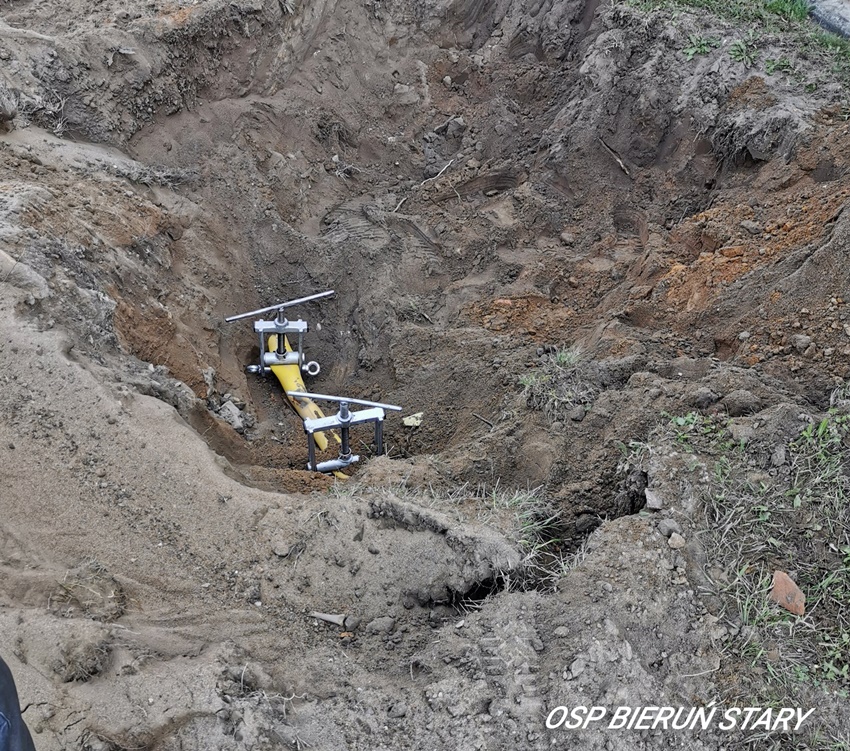 :22 sierpnia około godziny 9:05 dyżurny SK KM PSP Tychy otrzymał zgłoszenie o uszkodzonym gazociągu podczas prac ziemnych przy jednym z domów na ul. Bojszowskiej w Bieruniu. Na miejsce zdarzenia natychmiast zadysponowane zostały zastępy OSP Bieruń Stary (GCBA), JRG Tychy (GBA, GCBARt, SCRt) oraz patrol Policji i pogotowie gazowe. Po dotarciu na miejsce zgłoszenie potwierdziło się. Podczas prac ziemnych koparka przerwała rurę z gazem. Uszkodzona rura została zabezpieczona. Po kilkudziesięciu minutach działania na miejscu zostały zakończone.