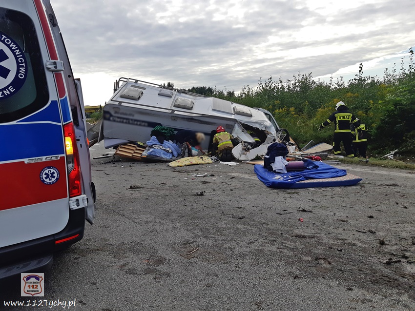 :11 września po godzinie 16:30 na trasie DK 81 w Orzeszu Woszczycach doszło do zdarzenia drogowego z udziałem dwóch samochodów. W zdarzeniu brały udział osobowy Mercedes i kamper. Na miejsce zdarzenia zadysponowane zostały zastępy JRG Mikołów, OSP Woszczyce oraz ZRM i patrol Policji. Ruch w kierunku Żor został całkowicie zablokowany. Z ustaleń pracujących na miejscu Policjantów wynika, że winnym zdarzenia jest kierowca kampera, który nie zachował ostrożności przy zmianie pasa ruchu i doprowadził do zderzenia z Mercedesem. Patrząc na zniszczenia kampera, aż trudno uwierzyć, że osoby nim podróżujące wyszły z tego zdarzenia bez szwanku. niestety kamper nadaje się tylko na złom. Utrudnienia w ruchu trwały blisko dwie godziny. Mikołowscy Policjanci prowadzą dalsze postępowania w sprawie i tych zdarzeń.
