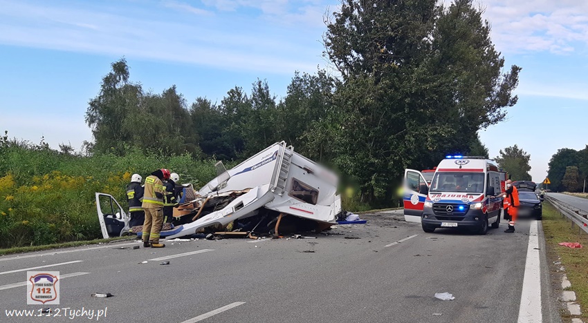 ZDERZENIE OSOBÓWKI I KAMPERA NA TRASIE DK 81 W ORZESZU