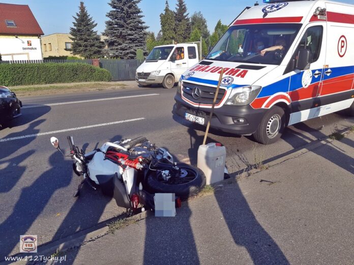 :14 września około godziny 16 na ul. Mikołowskiej (DK 44) w rejonie skrzyżowania z ul. Leśna doszło do zdarzenia drogowego z udziałem samochodu osobowego oraz motocykla. Na miejsce zdarzenia wezwany został ZRM, patrol Policji oraz zastępy JRG Tychy (GBA, SLRt). Ruch w miejscu zdarzenia odbywał się z utrudnieniami w obu kierunkach. Ze wstępnych ustaleń pracujących na miejscu Policjantów wynika, że winnym zdarzenia jest motocyklista, który jadąc w kierunku Mikołowa uderzył czołowo w Fiata. Motocyklista z obrażeniami ciała został przetransportowany do szpitala. Utrudnienia w ruchu w miejscu zdarzenia trwały blisko dwie godziny. Policjanci KMP Tychy prowadzą dalsze postępowanie w sprawie tego zdarzenia.