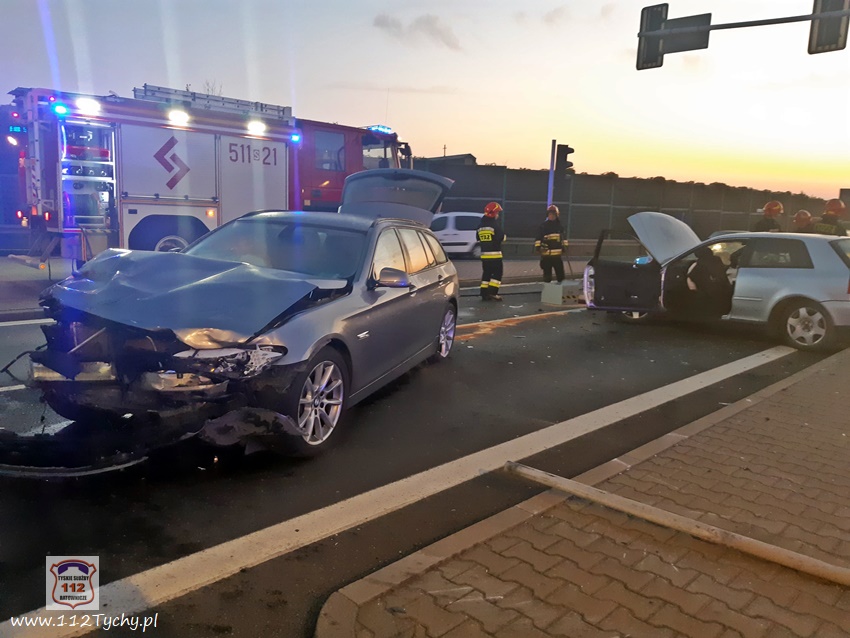 ZDERZENIE DWÓCH OSOBÓWEK NA SKRZYŻOWANIU DK 81 Z DK44 W MIKOŁOWIE