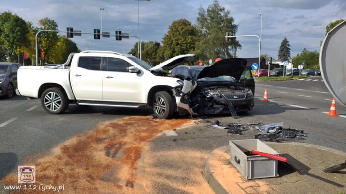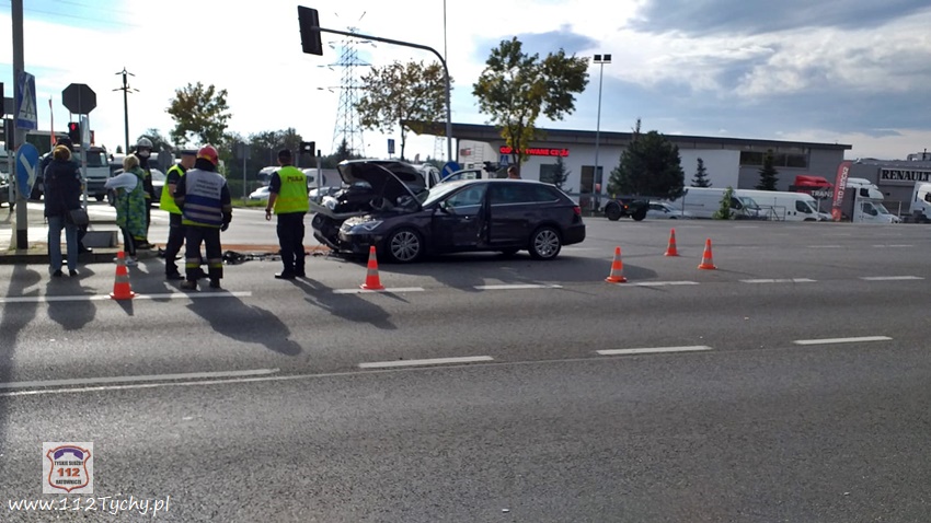 :25 września około godziny 9:30 na skrzyżowaniu ul. Cieszyńska (DK 81) – Rybnicka w Mikołowie doszło do zdarzenia drogowego z udziałem dwóch samochodów. Na miejsce zdarzenia zadysponowane zostały zastępy JRG Mikołów (SRt), OSP Mikołów (SLRtBA) oraz ZRM i patrol Policji. Lewe pasy w obu kierunkach krajowej 81 na czas działań zostały wyłączone z ruchu. Z ustaleń pracujących na miejscu Policjantów winną zdarzenia jest kierujaca Seatem kobieta, która wjechała na skrzyżowanie na czerwonym świetle doprowadzając do zderzenia z Mercedesem. Na szczęście w wyniku zderzenia uczestnicy nie doznali poważniejszych obrażeń. Po około godzinie działania na miejscu zostały zakończone, a ruch przywrócono.