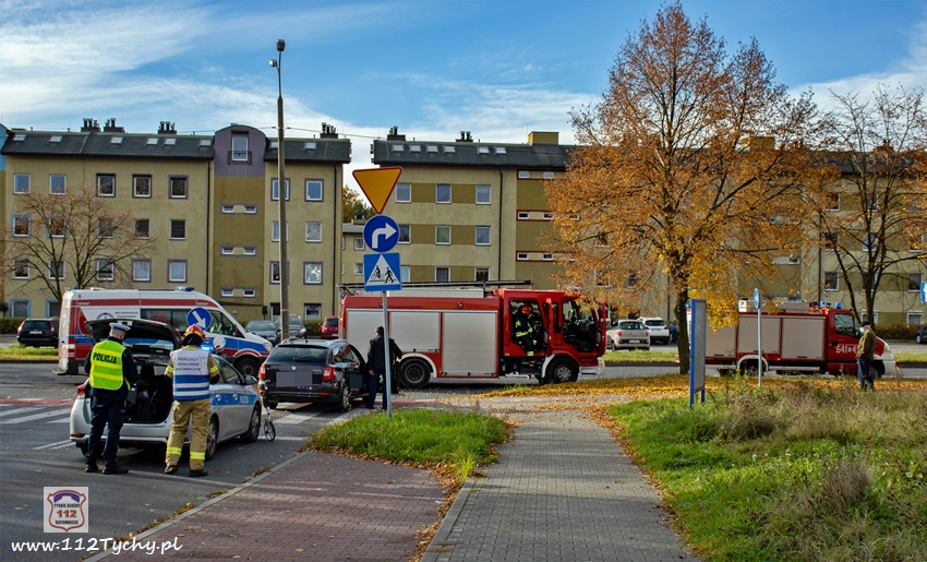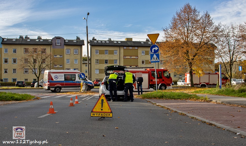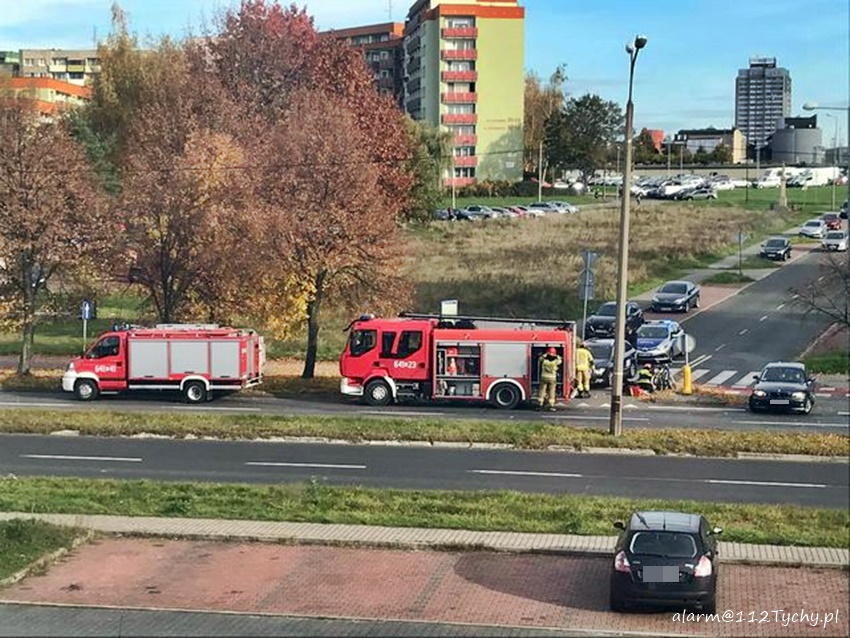 29 października około godziny 9 na oznakowanym przejściu dla pieszych z wyznaczoną śluzą rowerową (D – 6b) usytuowanym u zbiegu ul. Uczniowska – Sikorskiego doszło do potrącenia rowerzysty przez osobową Skodę. Na miejsce zdarzenia natychmiast wezwane zostały zastępy JRG Tychy (GBA, SLRt), patrol Policji oraz ZRM. Wyjazd z ul. Uczniowskiej na ul. Sikorskiego został zablokowany. Poszkodowany rowerzysta (77 lat) z obrażeniami ciała został przetransportowany do szpitala w Katowicach Ochojcu. Ze wstępnych ustaleń pracujących na miejscu Policjantów wynika, że winnym zdarzenia jest kierowca osobówki (64 lata), który nie ustąpił pierwszeństwa przejazdu rowerzyście. Na miejsce zdarzenia dodatkowo wezwany został policyjny technik kryminalistyki.