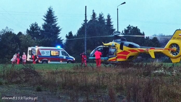 30 października 15:42 dyżurny KPP Mikołów otrzymał zgłoszenie o wypadku na terenie jednego z gospodarstw rolnych w Mikołowie Paniowach przy ul. Przelotowej. Ze zgłoszenia wynikało, że na miejscu interweniują ZRM i śmigłowiec LPR – Ratownik 4. Po dotarciu patrol na miejsce zgłoszenie potwierdziło się. Lądowisko dla latającej karetki zabezpieczały zastępy OSP Bujaków i JRG Mikołów. Z ustaleń pracujących na miejscu Policjantów jak i relacji osób wykonujących tam pracę wynika, że mężczyzna (pracownik firmy zewnętrznej) podczas prac przy maszynie rolniczej (kiszonki z kukurydzy) został przez nią wciągnięty. W wyniku tego zdarzenia doznał obrażeń kończyn dolnych (rany szarpane). Śmigłowcem LPR został przetransportowany do szpitala. O wypadku powiadomiona została prokuratura. Trwa dokładne ustalanie przyczyn i okoliczności tego wypadku.
