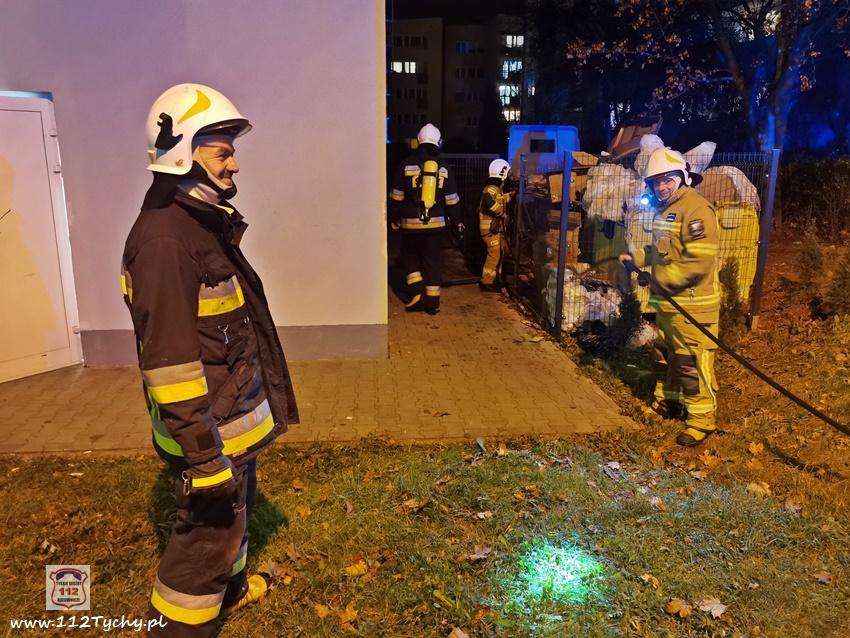 21 listopada około godziny 18:45 dyżurny SK KM PSP Tychy otrzymał zgłoszenie o pożarze kontenerów z papierem przy ścianie budynku usługowego na ul. Kopernika. Na miejsce zadysponowany został zastęp OSP Bojszowy (GBA) pełniący zabezpieczenie rejonu operacyjnego KM PSP Tychy. Przed przyjazdem strażaków na miejsce działania gaśnicze (gaśnica i wiadra z wodą) podjęły pracownice pobliskiego sklepu oraz funkcjonariusze Straży Miejskiej, którzy patrolowali okolicę. Po przyjeździe strażaków na miejsce, kontenery zostały przelane wodą i sprawdzone kamera termowizyjną. Po około trzydziestu minutach działania zostały zakończone.