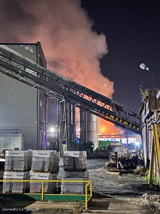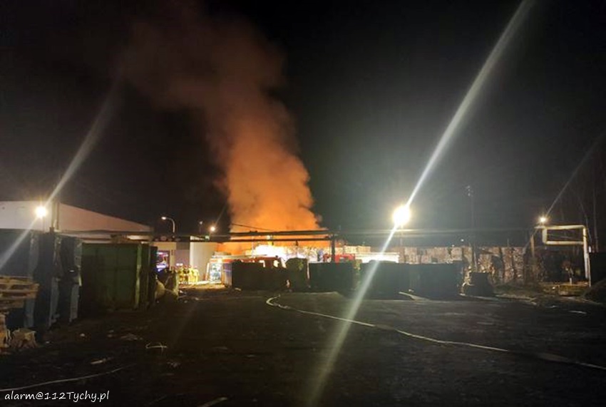 21 listopada około godziny 18:30 dyżurny SK KM PSP Tychy otrzymał zgłoszenie o pożarze składowanej makulatury na terenie jednego z zakładów produkcyjnych przy ul. Katowickiej 182. Pożar objął powierzchnię około 150m2. Na miejsce natychmiast zadysponowane zostały zastępy JRG Tychy (GBA, GBA, GCBARt, GCBA) oraz OSP Bieruń Stary (GCBA) i OSP Bieruń Nowy (GCBA). Po przybyciu na miejsce pierwszych zastępów działania gaśnicze prowadzili już pracownicy zakładu. Jednakże ilość sił i środków była niewystarczająca. Na miejsce zostały zadysponowane dodatkowo zastępy: JRG Mikołów (GBA), JRG Pszczyna (GBA) oraz pluton gaśniczy z Katowic (GBA, GCBA, GCBA). Strażacy podali kilka prądów środka gaśniczego celem ugaszenia pożaru. Po kilkunastu minutach na teren działań przyjechał zastępca KM PSP Tychy st.kpt. Sebastian Łukowicz (SLRr). Około godziny 19:30 na miejsce pożaru przyjechała grupa operacyjna KW PSP Katowice. Na czas działań ratowniczo – gaśniczych rejon operacyjny KM PSP Tychy pełni zastęp OSP Bojszowy (GBA). Na godzinę 21 nie mamy informacji, aby w wyniku tego pożaru ktoś został poszkodowany. W tym samym czasie (g.21) dowodzenie działaniami przejął KM PSP Tychy, st.bryg. Piotr Szojda. Ze względu na rodzaj zdarzenia na miejsce wezwani zostali przedstawiciele Wojewódzkiego Inspektoratu Ochrony Środowiska. Trwa ustalanie przyczyn pożaru. Działania zostały zakończone 22 listopada przed godziną 13.