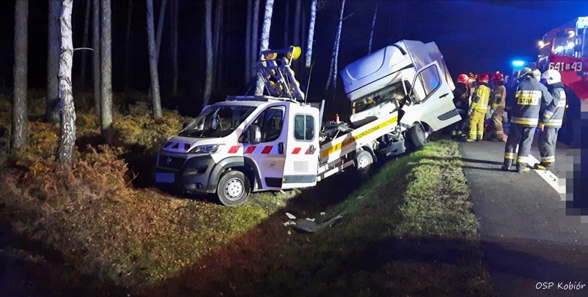 23 listopada około godziny 22 dyżurny SK KM PSP Tychy otrzymał zgłoszenie o wypadku drogowym z udziałem dwóch samochodów dostawczych na trasie DK 1 w Kobiórze (573 km) kierunek Pszczyna. Na miejsce natychmiast zadysponowane zostały zastępy OSP kobiór (GBARt), JRG tychy (GBA, SCRt) oraz patrole Policji (KMP Tychy, KPP Pszczyna) i ZRM. Na czas działań ruch w kierunku Pszczyny został wstrzymany. Po przybyciu służb na miejsce okazało się, ze samochód dostawczy (Renault) uderzył w pojazd służby drogowej (Fiat). W wyniku zderzenia oba pojazdy wpadły do przydrożnego rowu. W zdarzeniu poszkodowane zostały cztery osoby (3 pracowników służby drogowej i kierowca dostawczaka). Niestety życia kierowcy Renault (54 lata) nie udało się uratować. Na miejsce wezwany został prokurator. Policjanci pod nadzorem prokuratury prowadzą dalsze czynności w sprawie tego wypadku. Utrudnienia w ruchu trwały do wczesnych godzin porannych.
