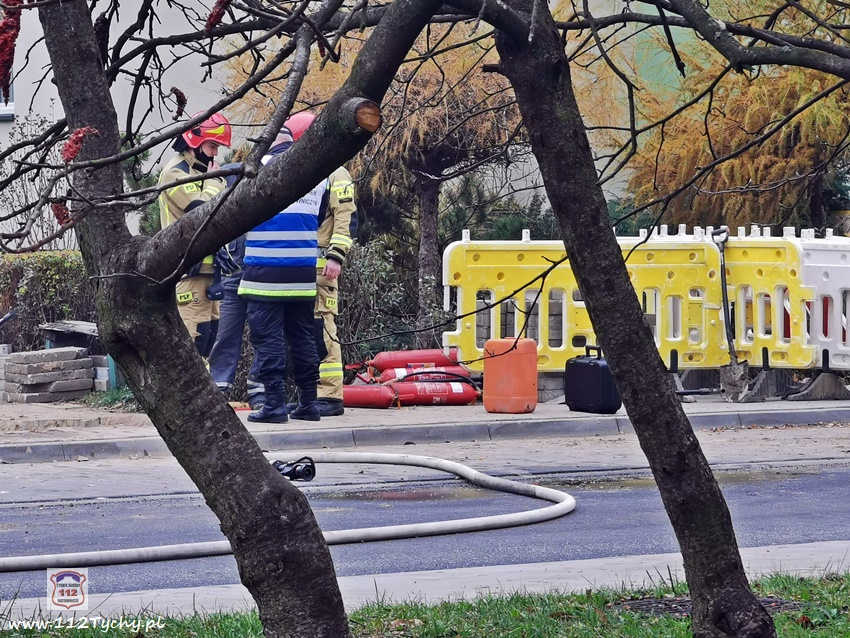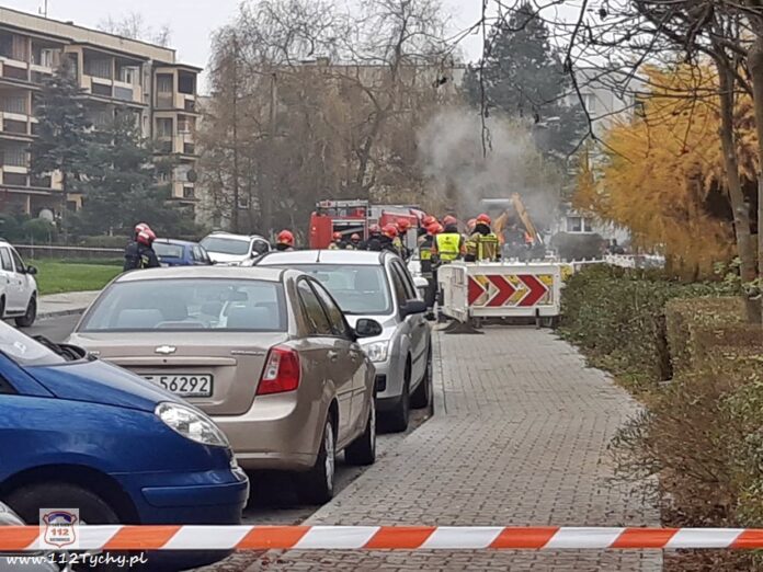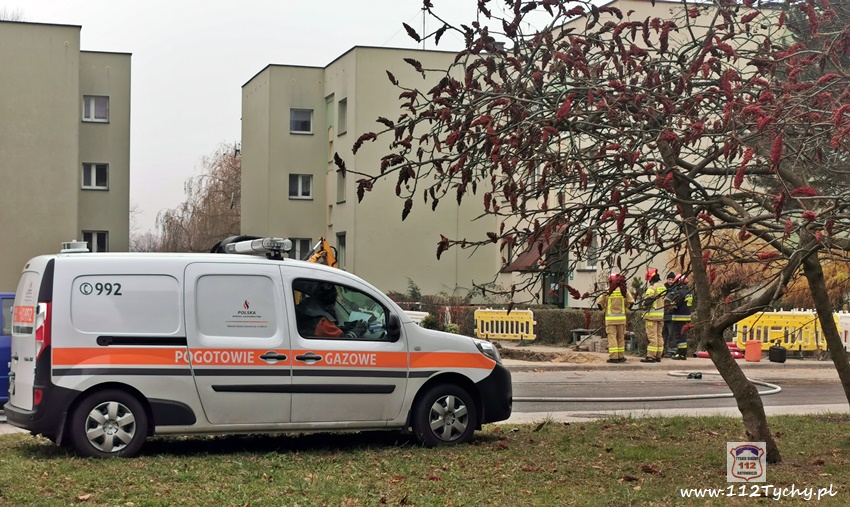 27 listopada około godziny 10:20 dyżurny SK KM PSP Tychy otrzymał zgłoszenie o rozszczelnieniu gazociągu i pożarze wyciekającego gazu przy ul. Husarii Polskiej. Na miejsce natychmiast zadysponowane zostały zastępy JRG Tychy (GBA, GBA, GCBARt, SCRt, SCD – 40,3) oraz pogotowie gazowe i patrol Policji. Po dotarciu na miejsce zgłoszenie zostało potwierdzone. W wyniku pożaru jeden z pracowników wykonujących prace przy gazociągu został poszkodowany. Na miejsce została wezwana karetka pogotowia. Strażacy zabezpieczyli miejsce zdarzenia, wyznaczyli strefę bezpieczeństwa i przystąpili do działań. Pracownicy gazowni zakręcili dopływ gazu. W celu ugaszenia pożaru użyte zostały gaśnice oraz podany został jeden prąd wody. W wyniku pożaru doszło również do uszkodzenia instalacji teletechnicznych będących w pobliżu. Poparzony mężczyzna po opatrzeniu pozostał na miejscu. Po kilku minutach na miejsce dojechał dodatkowy zastęp JRG Tychy (GBAPr) oraz KM PSP Tychy, st.bryg. Piotr Szojda (SOp), który przejął dowodzenie. Na czas działań ratowniczo – gaśniczych zabezpieczenie rejonu operacyjnego KM PSP Tychy pełnił zastęp OSP Lędziny (GBA). Działania na miejscu trwały blisko dwie godziny. Trwa wyjaśnianie przyczyn i okoliczności tego zdarzenia.