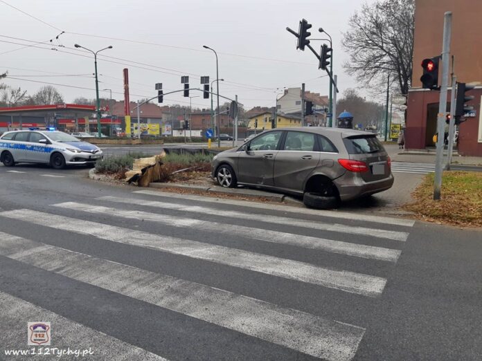 27 listopada około godziny 12:10 dyżurny KMP Tychy otrzymał zgłoszenie o zderzeniu dwóch pojazdów na skrzyżowaniu al. Bielskiej i ul. Edukacji. Na miejsce zdarzenia zadysponowany został patrol tyskiej drogówki. Po dotarciu patrolu na miejsce zgłoszenie potwierdziło się. Na szczęście uczestnikom zdarzenia nic się nie stało. Z ustaleń pracujących na miejscu Policjantów jak i relacji uczestników zdarzenia wynika, że winną zdarzenia jest kierująca VW kobieta, która jadąc prawym pasem al. Bielskiej w kierunku browaru chciała wykonać manewr skrętu w lewo w ul. Budowlanych uderzyła w bok jadącego lewym pasem Mercedesa. W wyniku kontaktu tych pojazdów kierowca Mercedesa stracił panowanie nad swoim pojazdem, ściął znaki i zatrzymał się przejściu dla pieszych. Policjanci KMP Tychy prowadzą dalsze postępowanie w tej sprawie.