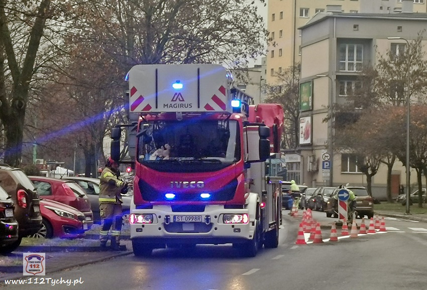 28 listopada około godziny 11 dyżurny SK KM PSP Tychy otrzymał zgłoszenie o zapachu spalenizny na klatce schodowej w budynku wielorodzinnym przy al. Niepodległości 48. Na miejsce zgłoszenia zadysponowany został pluton gaśniczy JRG Tychy (GBA, GBA, GCBARt, SCD – 40,3) oraz patrol Policji. Po dotarciu na miejsce i rozpoznaniu sytuacji strażacy nie znaleźli źródła zapachu. Sprawdzona została klatka schodowa oraz strych budynku. Po około czterdziestu minutach działania na miejscu zostały zakończone.