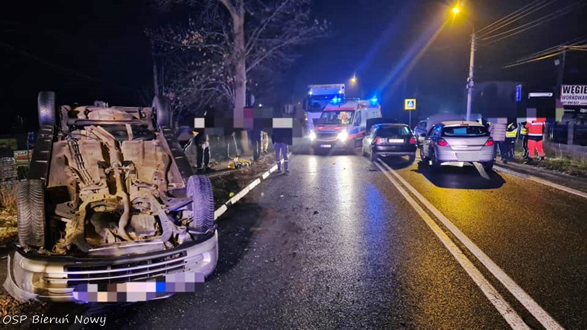 3 grudnia około godziny 19:25 dyżurny SK KM PSP Tychy otrzymał zgłoszenie o zdarzeniu drogowym na ul. Warszawskiej w Bieruniu. Do zdarzenia doszło w rejonie skrzyżowania z ul. Bogusławskiego. Na miejsce zdarzenia zadysponowane zostały: zastępy OSP Bieruń Nowy (GBARt), JRG Tychy (GBA), ZRM i patrole Policji. Po dotarciu służb na miejsce zgłoszenia potwierdziło się. W zdarzeniu brały udział dwa Ople i VW. W wyniku zderzenia jeden z Opli dachował. Osoby uczestniczące w zdarzeniu trafiły pod opiekę ratowników medycznych. Przez blisko godzinę ruch w miejscu zdarzenia był całkowicie zablokowany.
