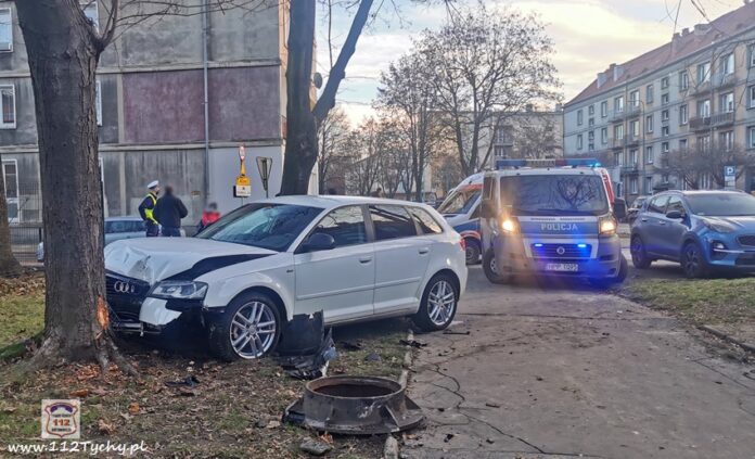 6 grudnia około godziny 13:50 na ul. Cyganerii w rejonie skrzyżowania z ul. Czechowa doszło do groźnie wyglądającego zdarzenia drogowego. Osobowe Audi uderzyło w przydrożne drzewo. Na miejsce zdarzenia zadysponowane zostały patrole Policji oraz ZRM. Po przybyciu na miejsce zdarzenia okazało się, że osobowe Audi wypadło z drogi w wyniku wymuszenia pierwszeństwa przez inny pojazd. Z ustaleń pracujących na miejscu Policjantów jak i relacji świadka zdarzenia i kierującej Audi, winną zdarzenia jest kierująca Fordem kobieta, która wymusiła pierwszeństwo przejazdu na kierującej Audi. Kierująca Audi chcąc uniknąć zderzenia z Fordem odbiła kierownicą, uderzyła w studzienkę kanalizacyjną, a następnie w drzewo. Kobieta kierująca Audi trafiła pod opiekę ratowników medycznych. Uszkodzona studzienka została zabezpieczona. Kierująca Fordem została ukarana mandatem. Działania na miejscu trwały ponad godzinę.