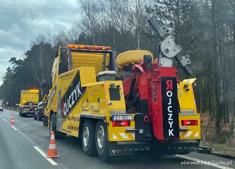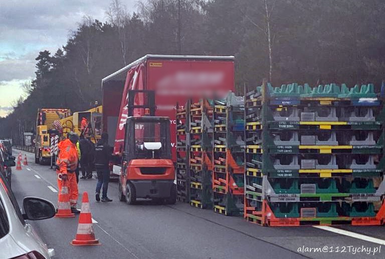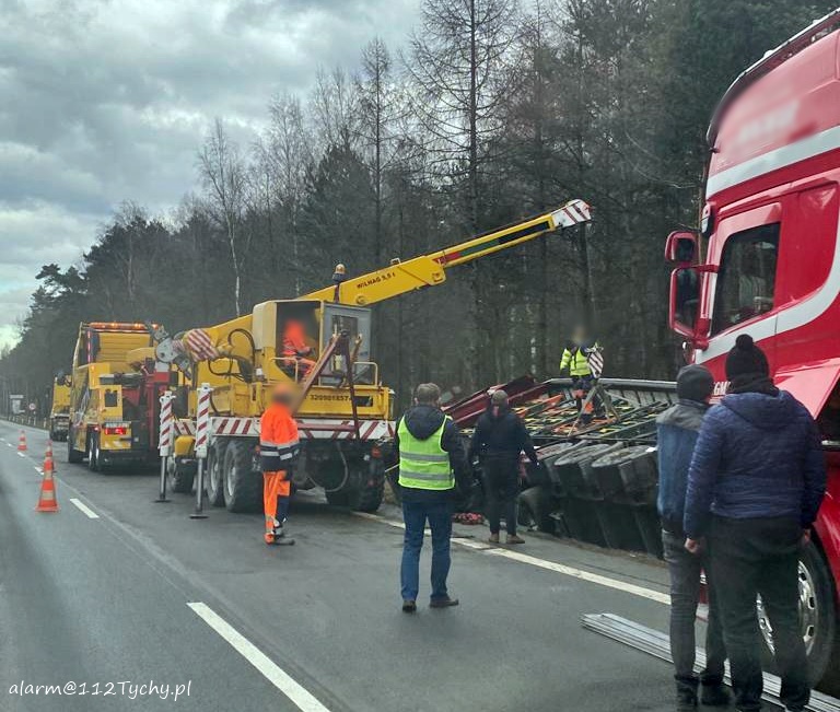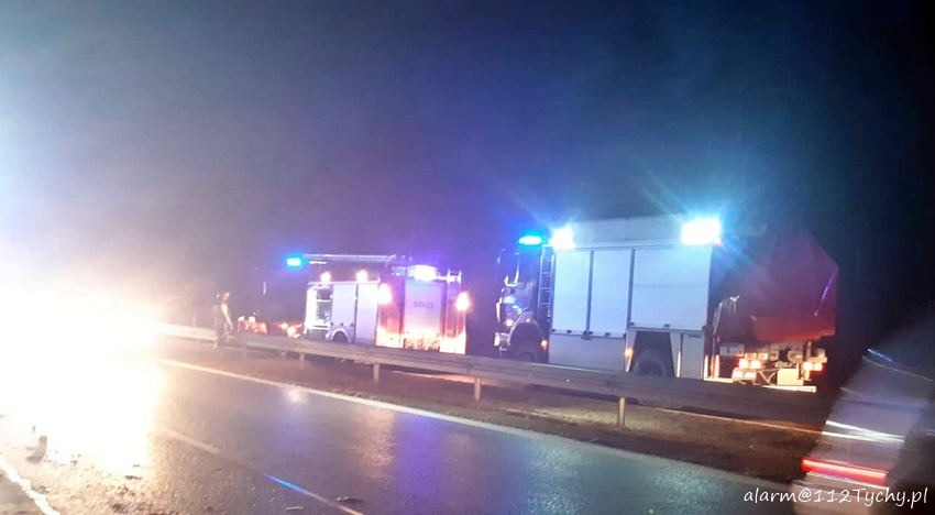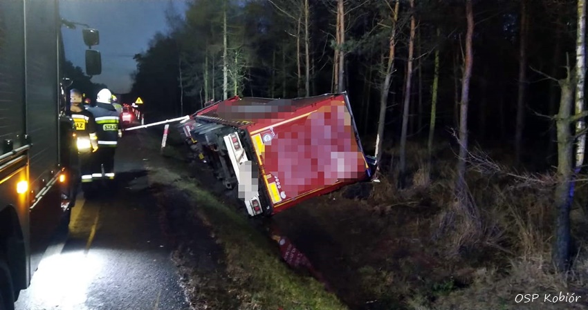 28 grudnia około godziny 6:30 dyżurny SK KM PSP Tychy otrzymał zgłoszenie o ciągniku siodłowym z naczepą w rowie na 572km trasy DK 1 w Kobiórze. Do zdarzenia miało dojść na pasie w kierunku Tychów. Na miejsce natychmiast zadysponowane zostały zastępy OSP Kobiór (GBARt), JRG Tychy (GBA, GCBA, SCRt) oraz ZRM i patrole Policji. Po dotarciu na miejsce zgłoszenie potwierdziło się. Prawy pas krajowej 1 został zablokowany. Kierowca zestawu trafił pod opiekę ratowników medycznych. Na szczęście nie doznał on obrażeń. Dodatkowo miejsce zdarzenia zabezpieczyła patrol Służby Drogowej. Po około godzinie strażacy zakończyli swoje działania. Miejsce zdarzenia przejęli pracownicy pomocy drogowej. Ładunek z naczepy został przeładowany na inna naczepę podstawioną przez właściciela pojazdu. Około godziny 13 przeładunek został zakończony. Zostały podjęte prace przygotowawcze do wyciągnięcia zestawu z rowu. Po godzinie 17 zestaw został wyciągnięty i działania zostały zakończone. Kierowca zestawu został ukarany mandatem.
